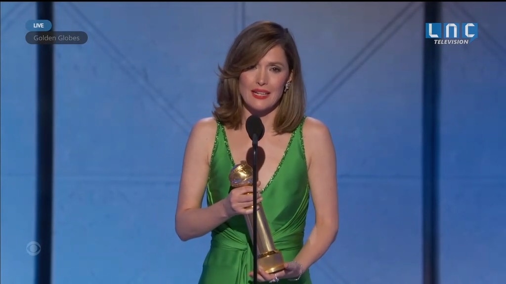 10:21 Rose Byrne憑《If I Had Legs I'd Kick You》爆冷奪得「喜劇或音樂劇類別最佳女主角」獎,擊敗大熱門愛瑪史東。是次為Rose Byrne第三次提名金球獎,並首次榮封金球影后。
