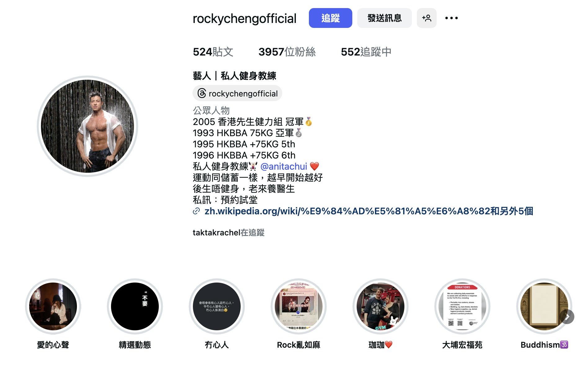 雖然Rocky的社交媒體的個人檔案上,仍標註崔碧珈,寫「私人健身教練🏋🏻‍♀️ @anitachui ❤️」,又有名為「珈珈❤️」的限時動態精選,但崔碧珈就已取消追蹤男方。