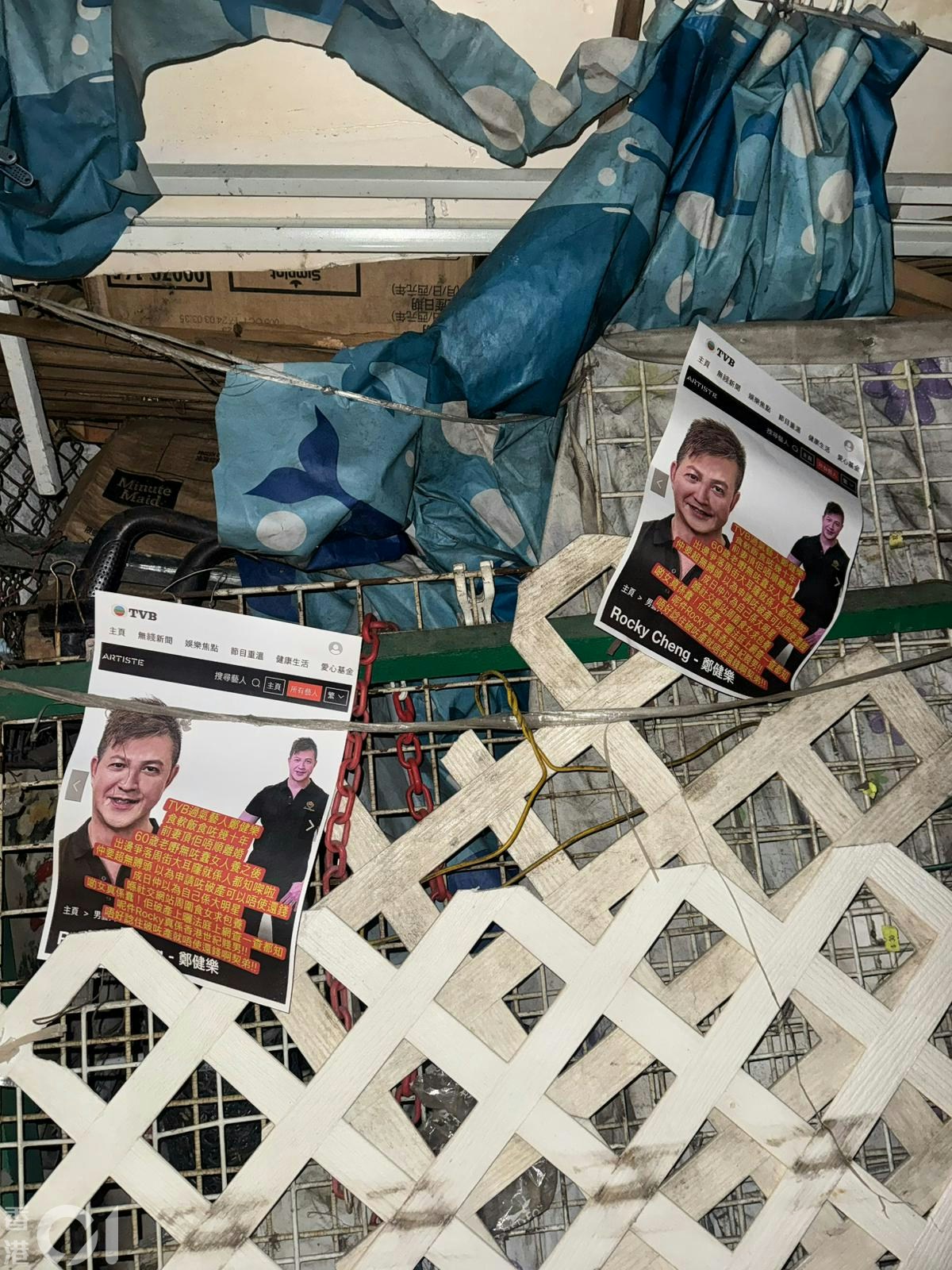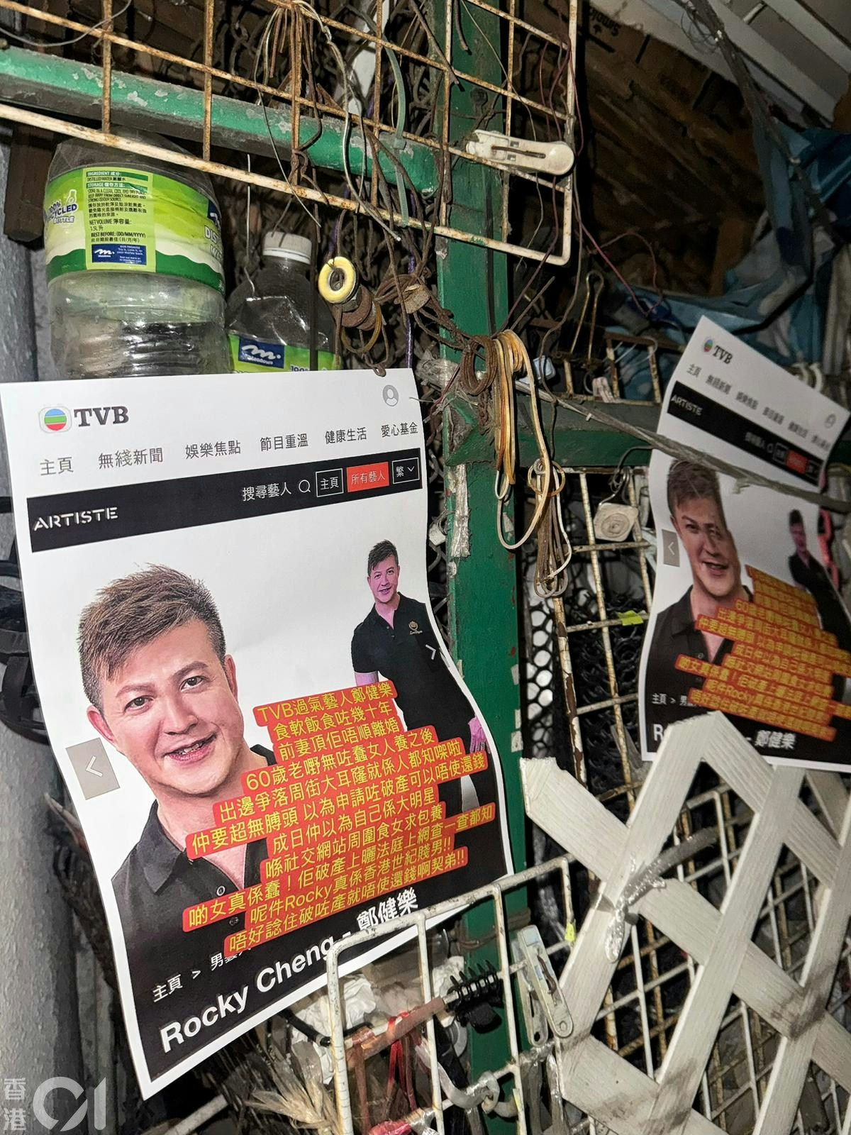 近日有讀者向《01娛樂》爆料,指日前在旺角見到Rocky被貼街招,內容指控他幾宗罪及稱他欠債、破產等。(讀者提供)