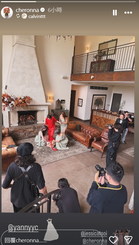 陳穎欣結婚怎能少了一班姊妹,昔日隊友蔡明思與吳嘉禧驚喜合體,為陳穎欣擔任姊妹。二人遠赴澳洲力挺外,更親手為陳穎欣換上中式裙褂,可見姊妹情之深。