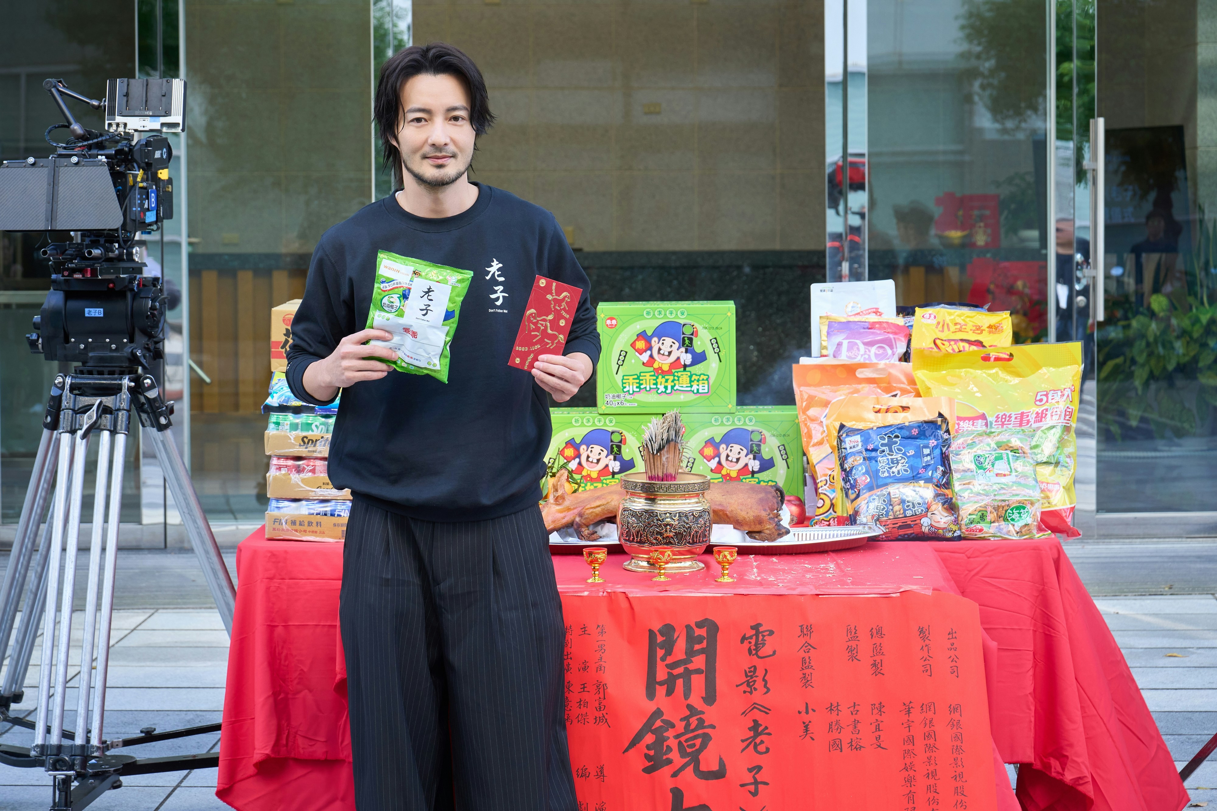 郭富城對新作《老子》劇本十分欣賞,而且很投入,事前在香港和導演及主創團隊多次見面交流劇本及造型,對每個細節也提出寶貴意見。到了今日正式開機,他也是萬分期待,很開心收到於香港電影開機傳統必備的「開工利是」,和主演王柏傑、陳意涵、古斌及導演團隊一起拿著利是大合照,希望電影公司、主要演員及劇組人員,拿著象徵電影紅紅火火的利是,祈願開工大吉、拍攝順利。王柏傑則拿出被視為百工百業守護神的經典零食,既討喜又可愛,現場氣氛熱鬧歡欣。郭富城透露新戲開拍心情:「每次接演到新的電影,我都把自己當成一個新的演員,最重要的是全情投入,用心地從中學習更多,就像和角色活過一次一樣!」郭富城並說此次主演電影《老子》,籌備期間和導演許富翔、王柏傑都花費許多時間溝通,從角色外型到個性談吐,每個細節都不放過,務求做到最好。
