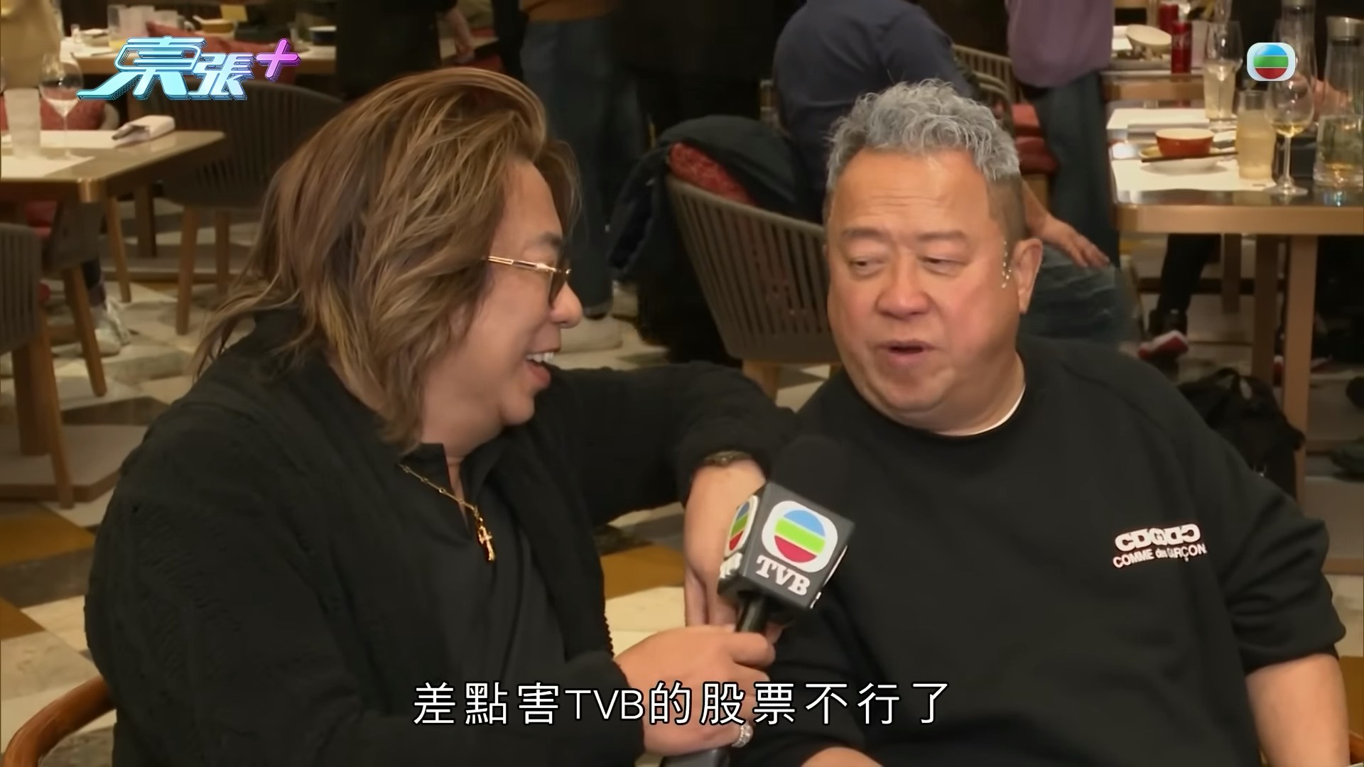 曾志偉開玩笑地說:「我哋TVB幾咁危險呀,搵你拍嗰套《上車族》,爭啲搞到TVB啲股票冧咁滯!」(YouTube@東張+)