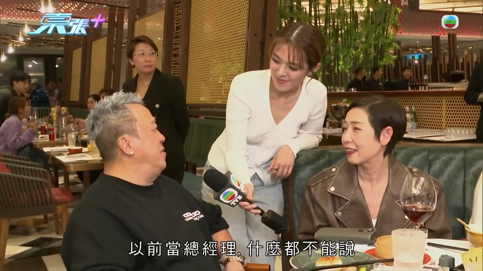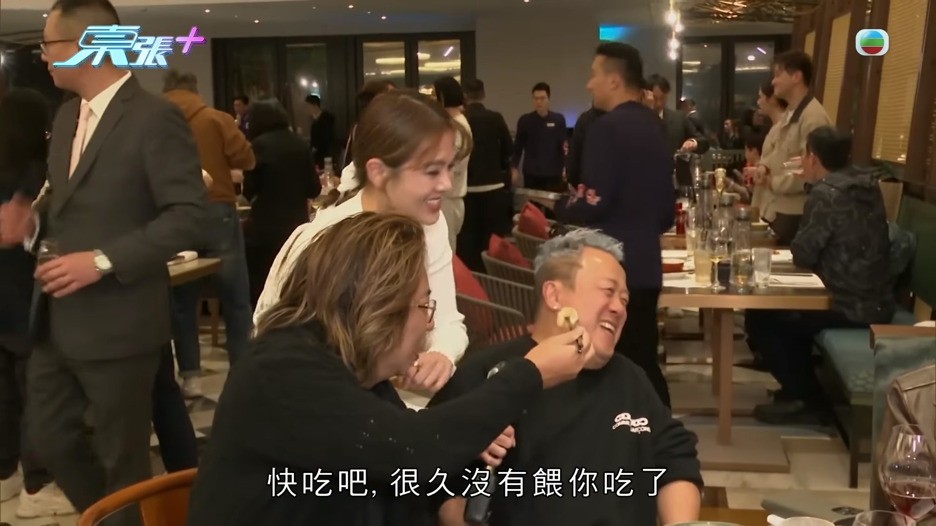 回復自由身的曾志偉,在當晚的慶功宴上即時「解封」,回歸昔日口沒遮攔、風趣幽默的本色。(YouTube@東張+)