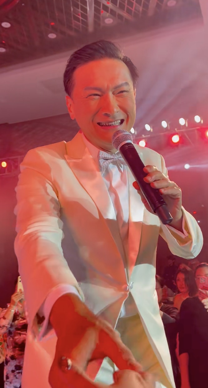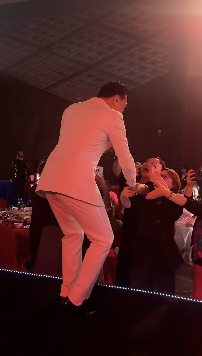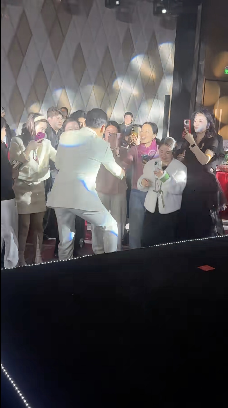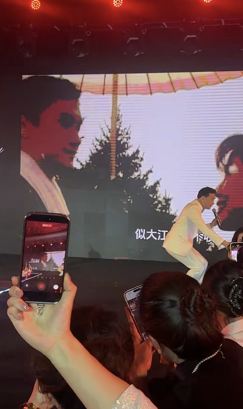 陳錦鴻近日以一身全白西裝,現身內地商演。陳錦鴻一出場已引起在場觀眾哄動,他從門口走到台上,全程不見保安跟身,任由觀眾貼上前與他握手,親民大方!陳錦鴻熱情回應觀眾,由台下握到台上,左面握完到右面,任由女觀眾摸手仔毫不介意。近鏡睇陳錦鴻皮膚狀態好好,生活不錯!