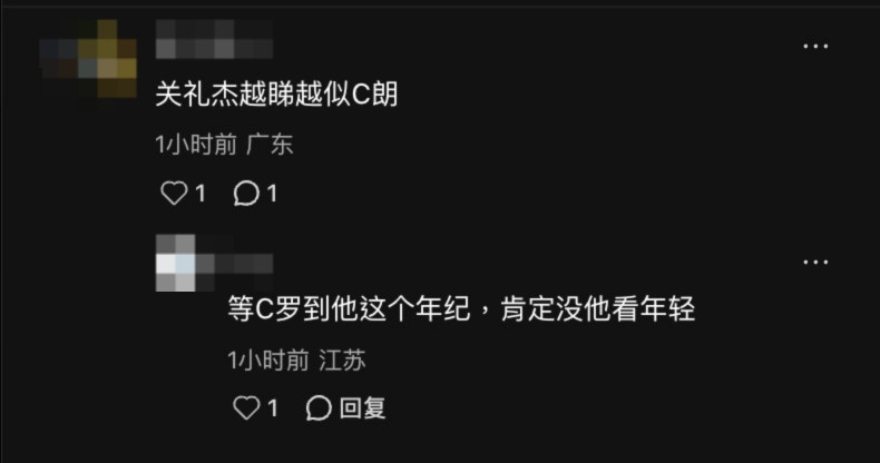 不少網民紛紛留言大讚:「第一眼就看到了關禮傑」、「關禮傑還這麼年輕」、「關禮傑都係型」、「最鍾意睇關禮傑嘅戲,不老男神」;甚至有人認為:「關禮傑越睇越似C朗。」有網民認同說:「等C朗到他這個年紀,肯定沒他看年輕。」評價相當之高。