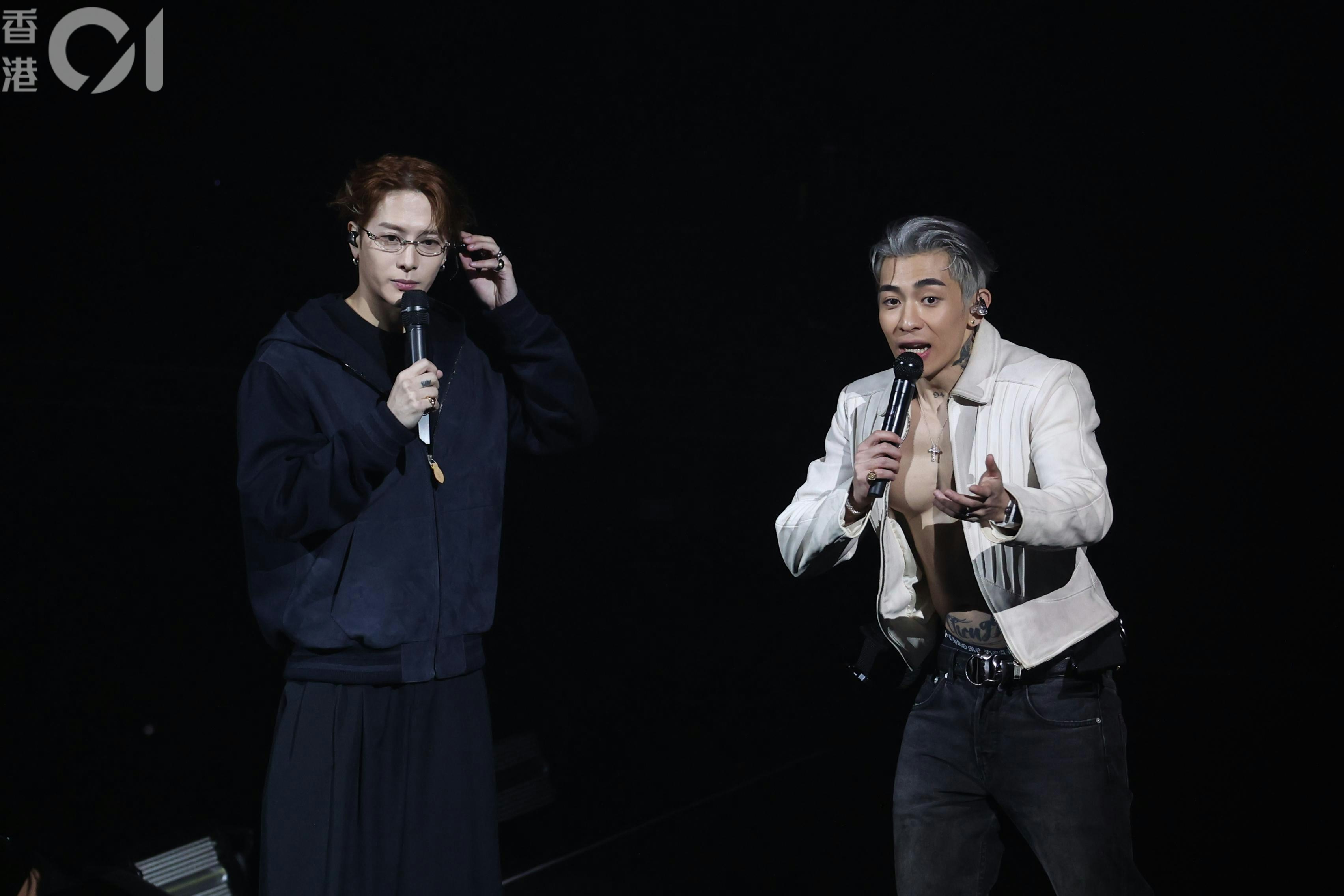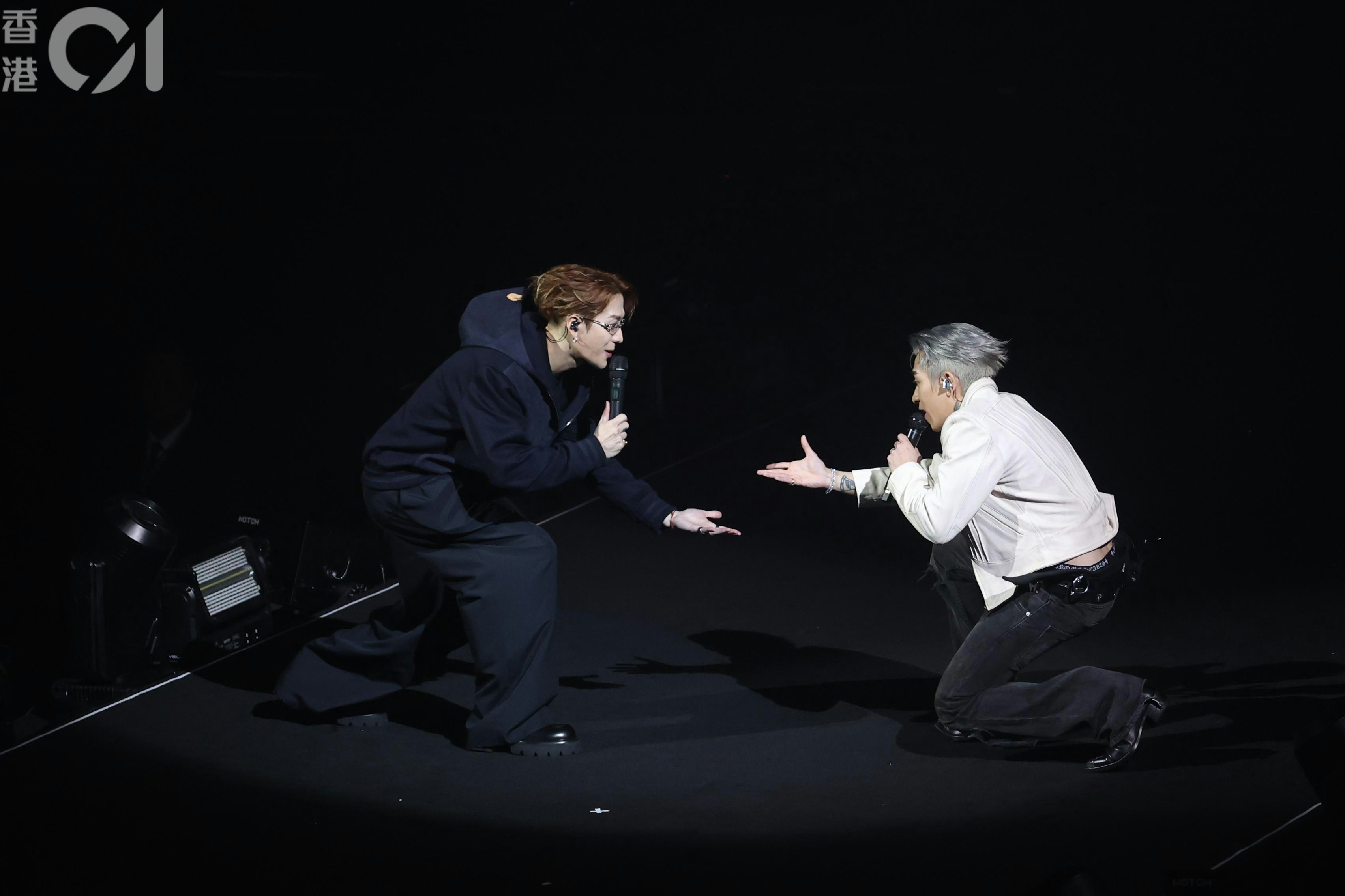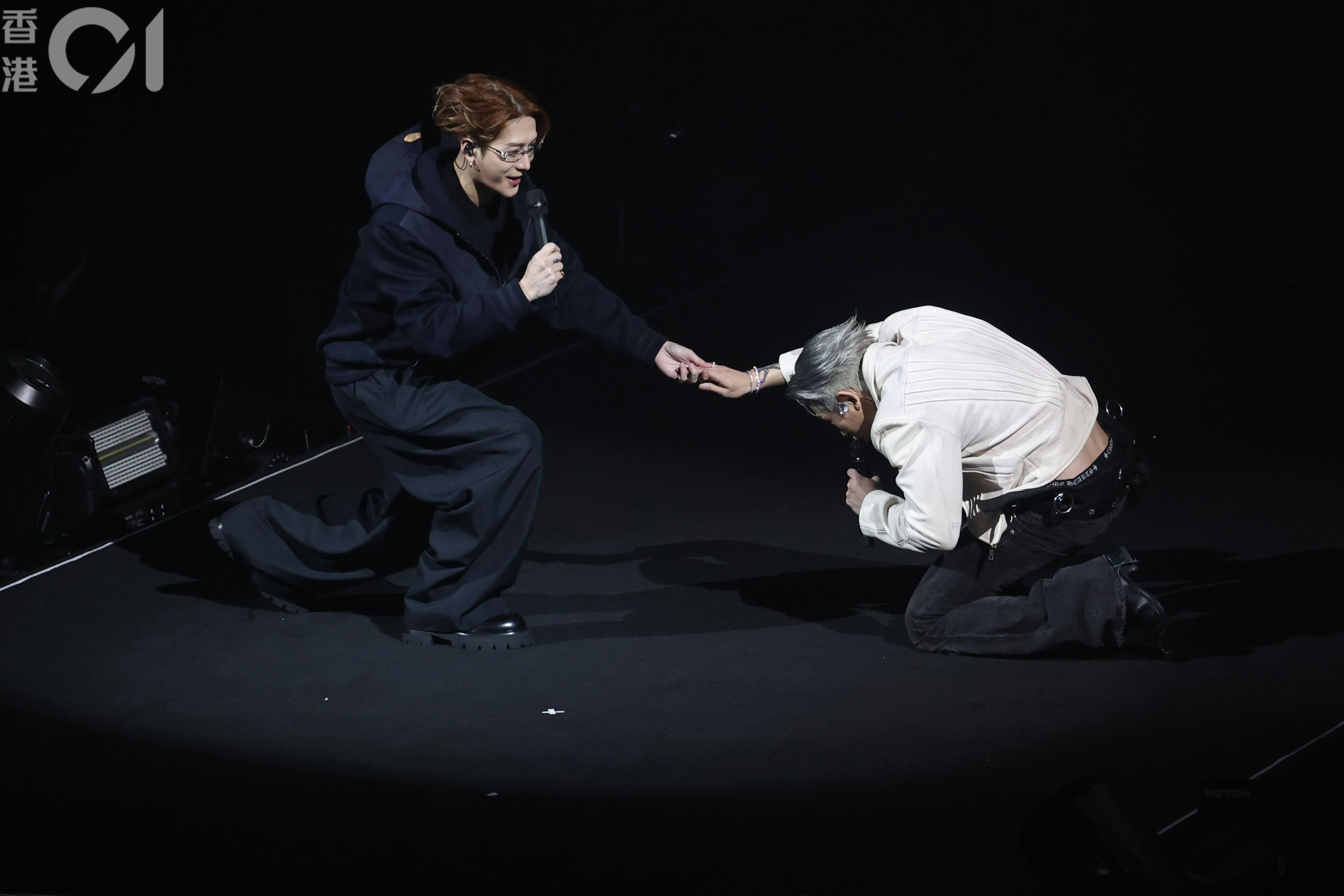 Tyson Yoshi真係好大隻!(陳順禎 攝)王嘉爾於今晚(25/1)Tyson Yoshi澳門演唱會擔任嘉賓,按慣例爆肌的Tyson Yoshi穿上西裝外套,露出底下的巨型胸肌和六舊腹肌。搭着膊頭坐在台邊的王嘉爾也忍不住「望多兩眼」!其後兩人在舞台上演出時,Tyson Yoshi更當眾對王嘉爾下跪,王嘉爾見狀也單膝跪下! Tyson Yoshi演唱會今日(25/1)再於澳門倫敦人演藝館舉行。(陳順禎 攝) 王嘉爾眼神離不開Tyson Yoshi肌肉。(陳順禎 攝) 王嘉爾擔任Tyson Yoshi演唱會嘉賓。(陳順禎 攝) Tyson Yoshi向王嘉爾「求婚」?(陳順禎 攝) 其實係下跪表達感激之情,都算係「示愛」㗎!(陳順禎 攝