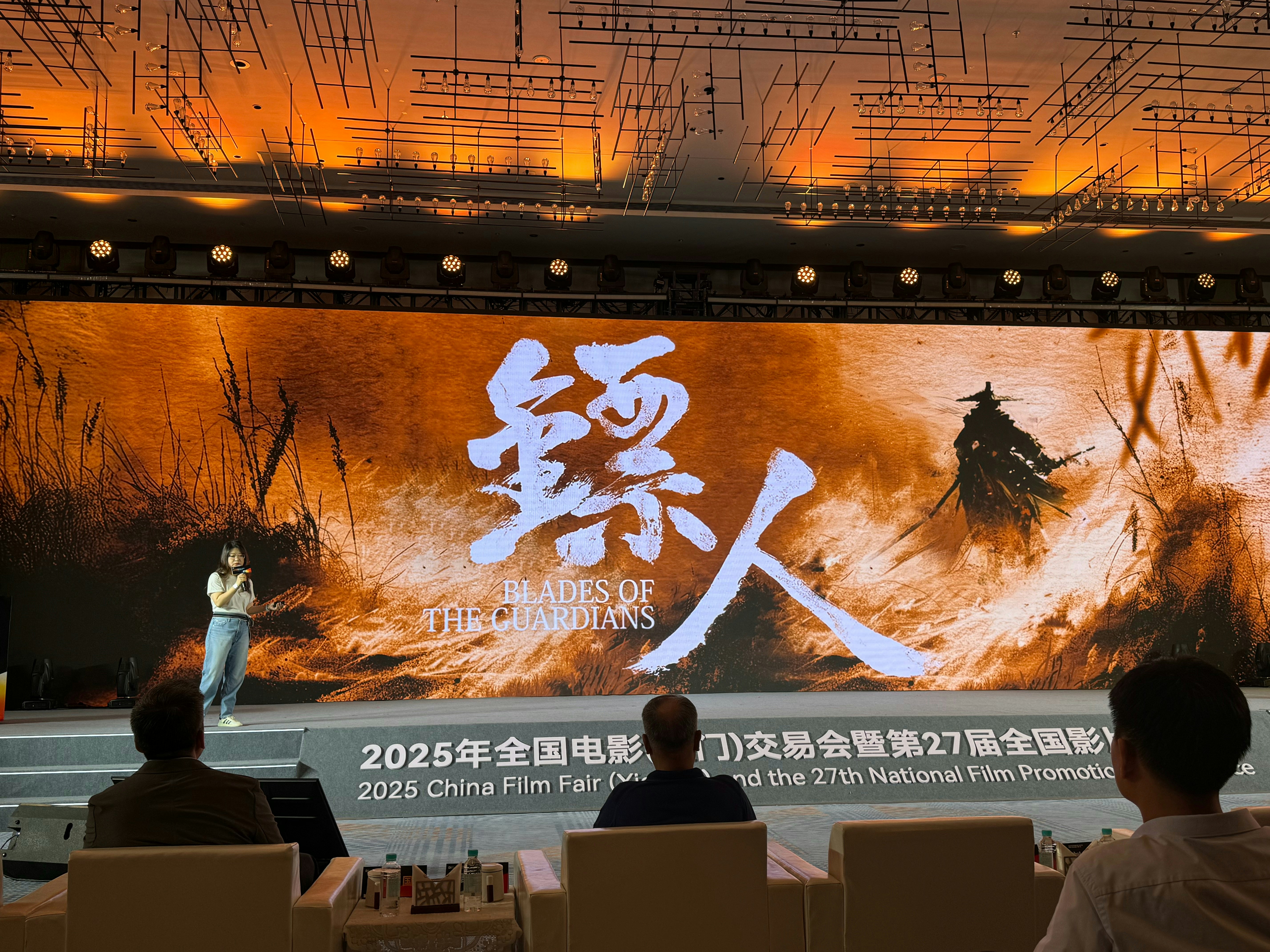 《鏢人:風起大漠》去年於「2025年全國電影(廈門)交易會暨第27屆全國影片推介會」上首次亮相及展開宣傳。(電影頻道融媒體微博圖片)