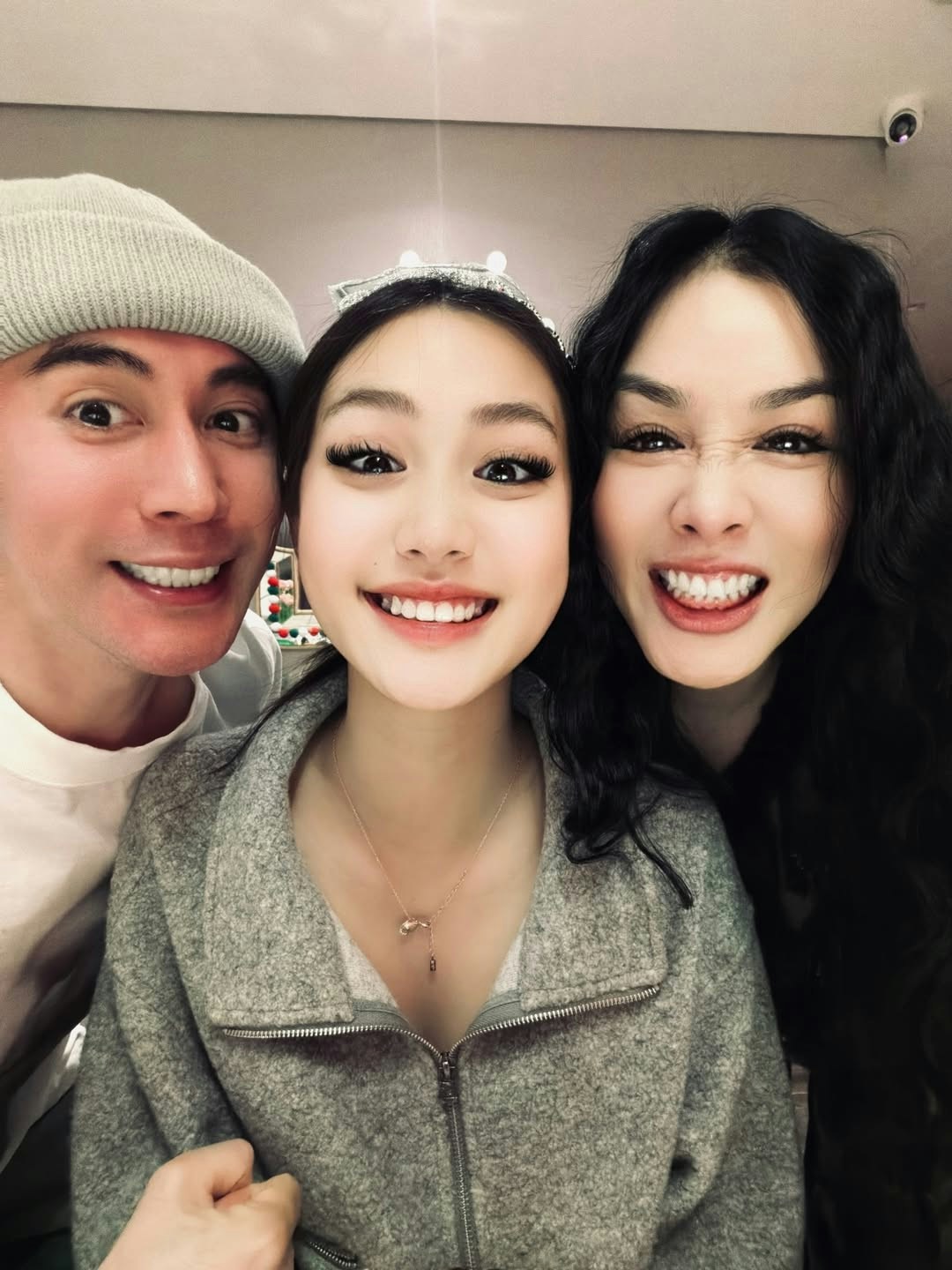 鍾麗緹難得與三位女兒同場合照,除了曾參加選美得奬的長女張敏鈞、被內地網民大讚擁有名模級美貌的二女張思捷外,幼女張凱琳亦以遺傳到母親神級顏值,母女不論尖削臉型、水汪汪深邃大眼及筆挺鼻型均非常相似!鍾麗緹連環分享三張與老公張倫碩、Cayla的合照,三人一齊擺出搞怪表情,除了突顯鍾麗緹童顏不老外,母女樣貌幾乎完全餅印一樣,連笑容都一模一樣!