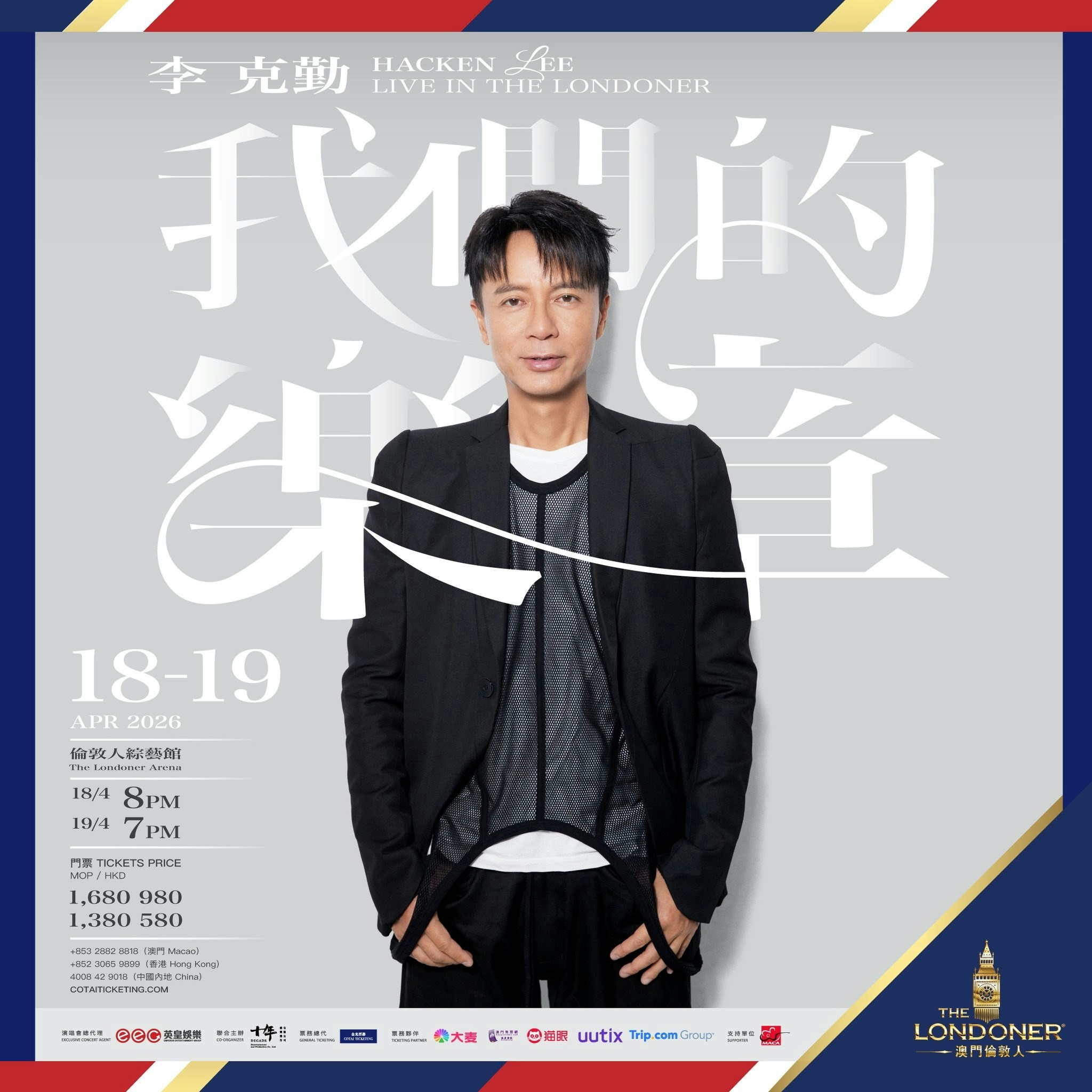 李克勤「我們的樂章」演唱會將於4月18日(星期六)、19日(星期日)在澳門倫敦人綜藝館舉行。(澳門倫敦人FB)李克勤演唱會2026澳門|詳情演唱會日期 ...