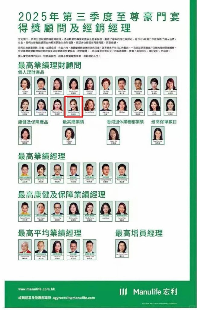 據知要獲得MDRT會員資格,從業員須達到指定業績要求(保費、佣金或收入),會員身份僅授予一年。按業績要求,MDRT會員類型可細分為3種,包括最基本的MDRT、Court of the Table(COT,超級會員)及Top of the Table(TOT,頂尖會員)。根據2025年度的業績標準,MDRT及COT的收入分別為816,200港元及2,448,600港元,TOT的收入更達4,897,200港元,而張利華躋身2025 TOT行列,更成為公司最高業績理財顧問之一,相當犀利!