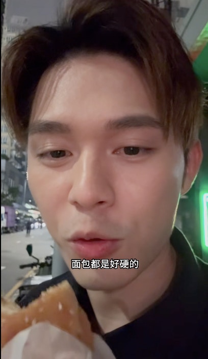 劉頌鵬夜晚開工,宵夜是硬梆梆的麵包。(小紅書)
