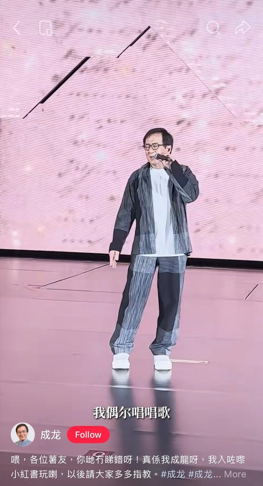 成龍大哥當然鍾意唱歌!(成龍小紅書截圖)