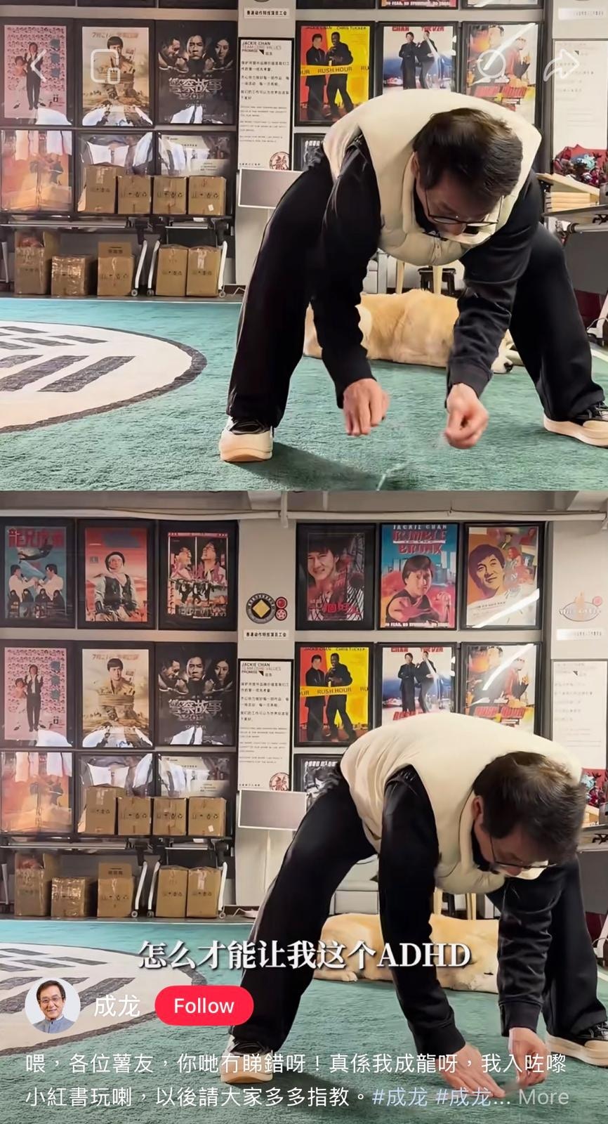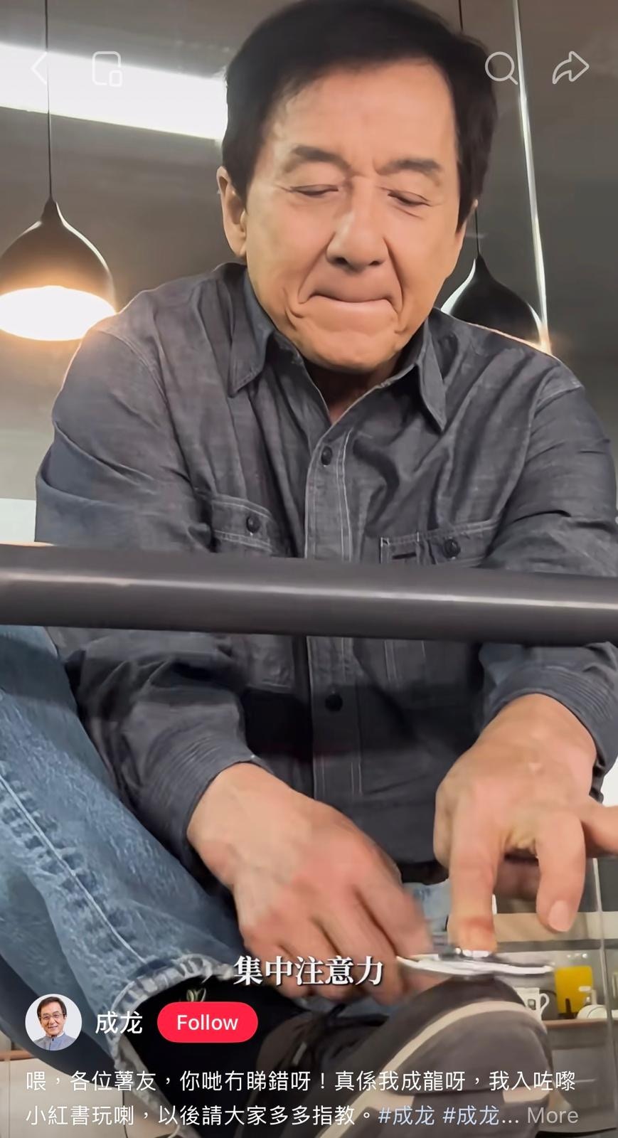 成龍在自我介紹影片中,激罕自揭患有ADHD。(成龍小紅書截圖)