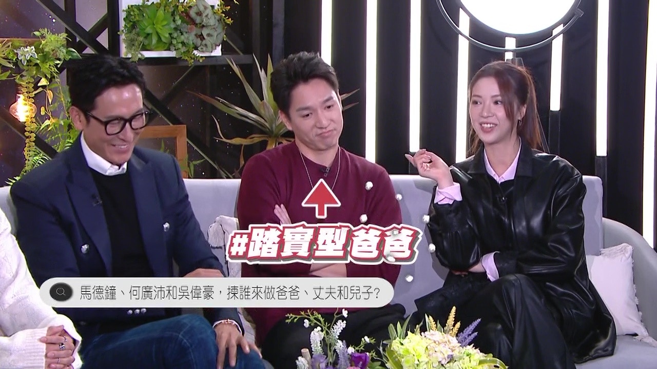 今集絕對可以「嘻嘻哈哈」形容,兩組受訪嘉賓均笑料極多!向來愛向嘉賓發問刁鑽問題的《一周星星》,先向《非常》的賴慰玲及陳曉華問了一個爆笑假設性問題:「馬德鐘、何廣沛和吳偉豪,揀誰做爸爸、丈夫和兒子?」,結果賴慰玲及陳曉華竟不約而同直指吳偉豪老豆味濃,到底原因係乜?至於何廣沛,則同時被二人嫌棄,賴慰玲說:「我唔會畀何廣沛做我老公,佢好唔可靠,成日好似油條咁,佢好鍾意吹水呀…」陳曉華說:「我會忍唔住成日都鬧佢。」