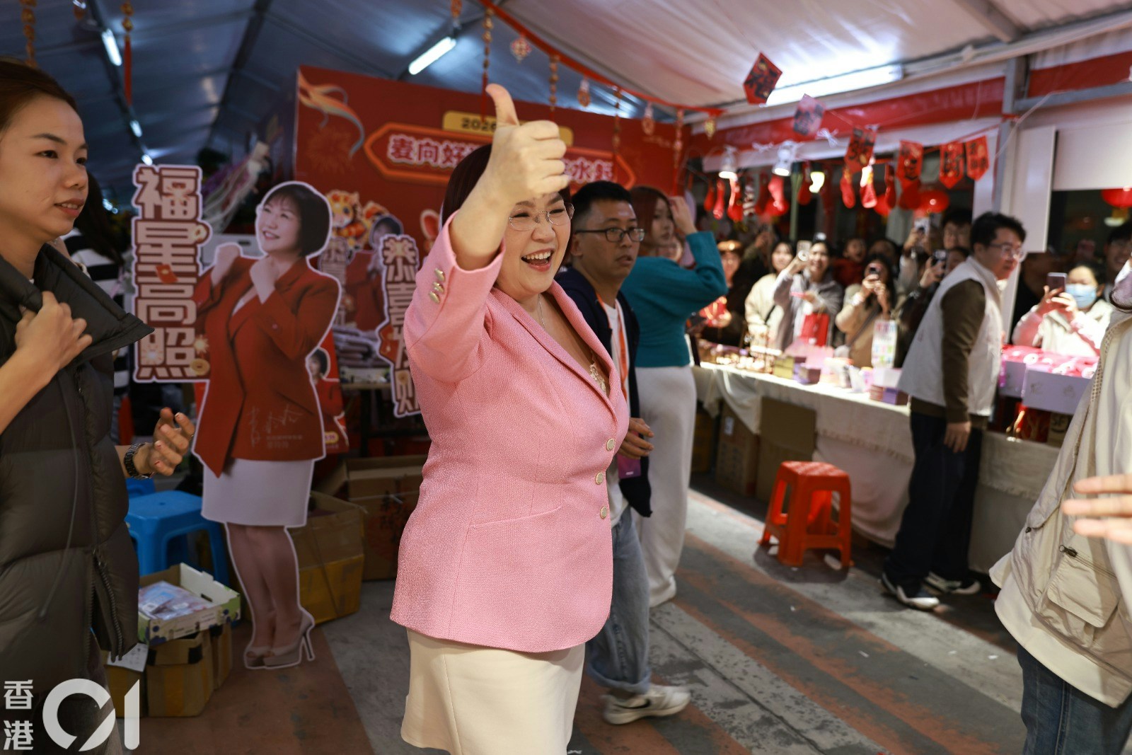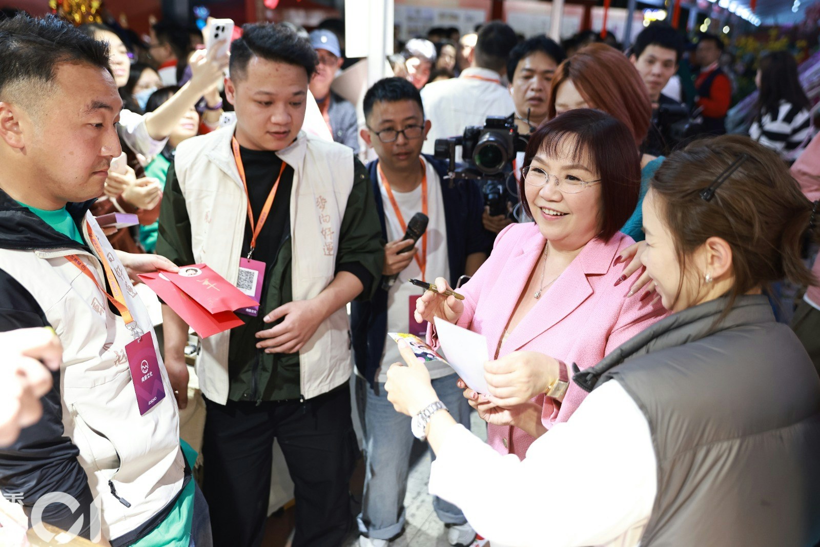 當日晚上,玲玲師傅再會合另一位視帝鄭嘉穎齊齊逛花市,嘉穎甫從休息室步出,一眾熱情女粉絲即一湧而上,混亂間十多名粉絲相繼跌倒,嘉穎見狀貼心逐一扶起,場面有如浪漫偶像劇,女粉們心心眼大讚嘉穎體貼兼有風度。其後嘉穎受訪時表示過年當然要一家人齊齊整整團年,但當說到家人,嘉穎這位三子之父即嘴扁扁大嘆來番禺前一刻還在家中教由國際學校轉讀傳統名校的大仔鄭承悅(Rafael)做功課:「好痛苦,牆壁個『牆』字、燈籠個『籠』字都好難寫,個仔做功課做到喊!我心願係佢默書考試100分!」