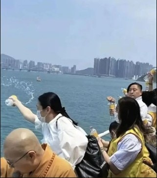 朱麗倩現身海邊參與佛教活動。(網上圖片)