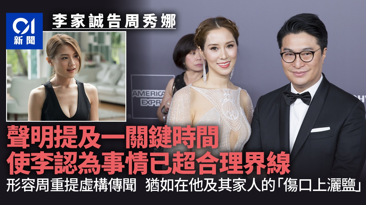 更甚的是,在2025年6月,周秀娜小姐在宣傳其新電影作品期間,接受某個YouTube頻道訪問時,預先溝通要談論她被包養的傳聞,她的言論又再一次引發網絡上揑造李先生與周秀娜小姐虛構關係的大量討論及視頻。儘管李先生及其家人正在面對失去父親李兆基博士的悲痛,周秀娜小姐自私地為了達到其個人宣傳目的,明知他們正處於這個艱難時刻,仍然選擇重提虛構傳聞,令他們又一次要面對這些誇張失實、不合法、不合理及不負責任的網絡欺凌,猶如在李先生及其家人的「傷口上灑鹽」。其中一些視頻內容涉及李先生太太及父母,甚至捏造從未發生的情景,令人誤以為李先生家人曾經牽涉刑事罪行,這加重他們面對失去至親的傷痛。因此,李先生認為事情已超出合理界線,並已達至合理人士包括李先生忍無可忍的地步。為了保護個人、家人及家族名譽,以及釐清事實,所以有必要向周秀娜小姐採取法律行動。