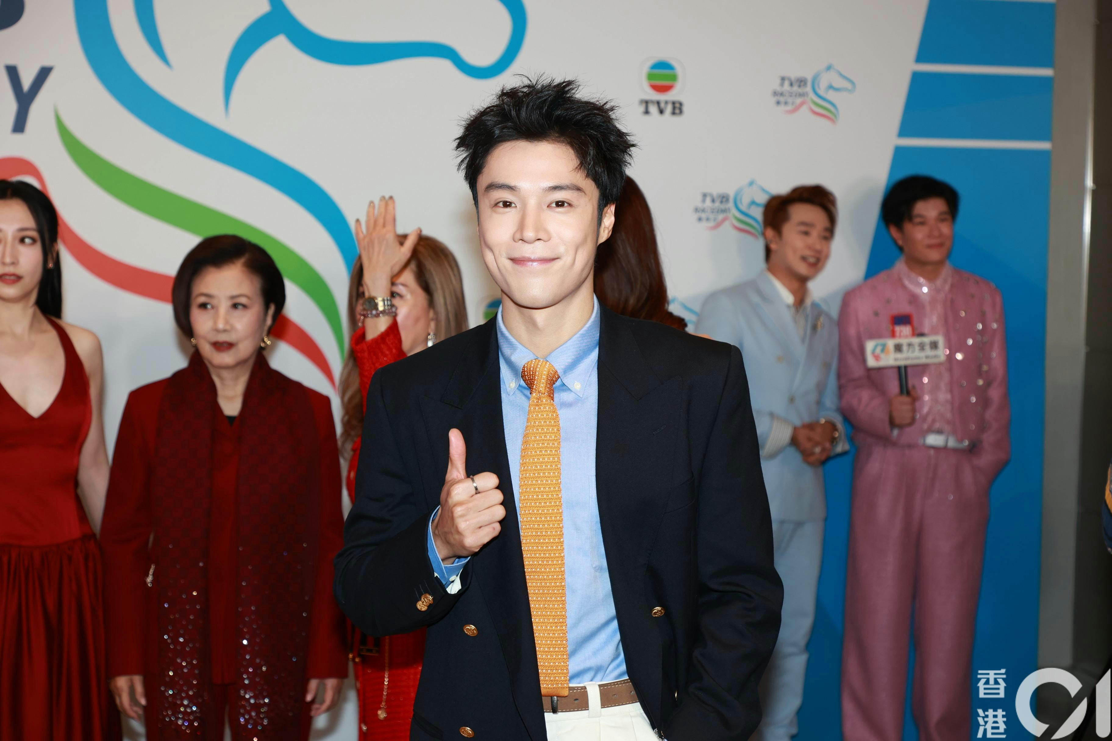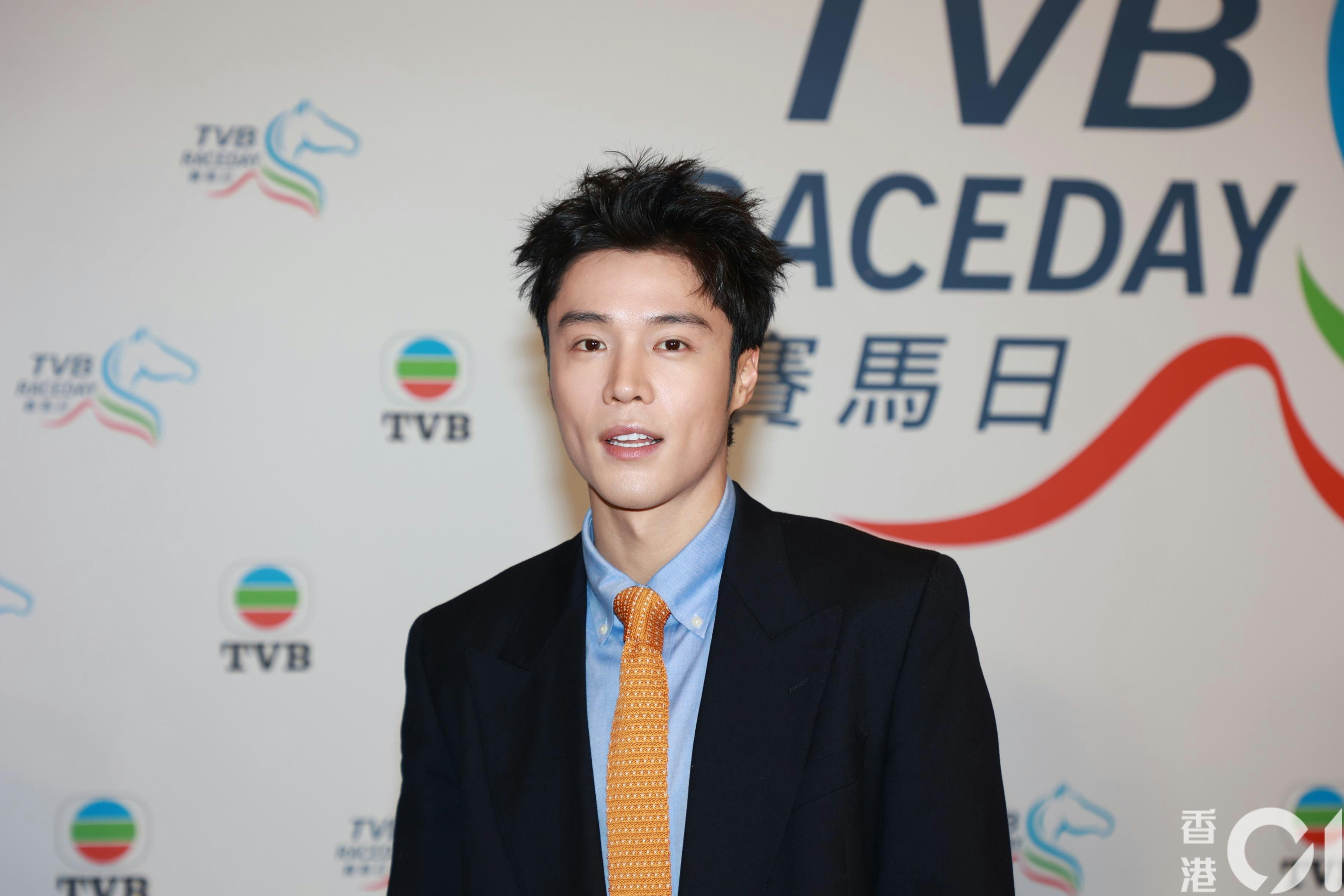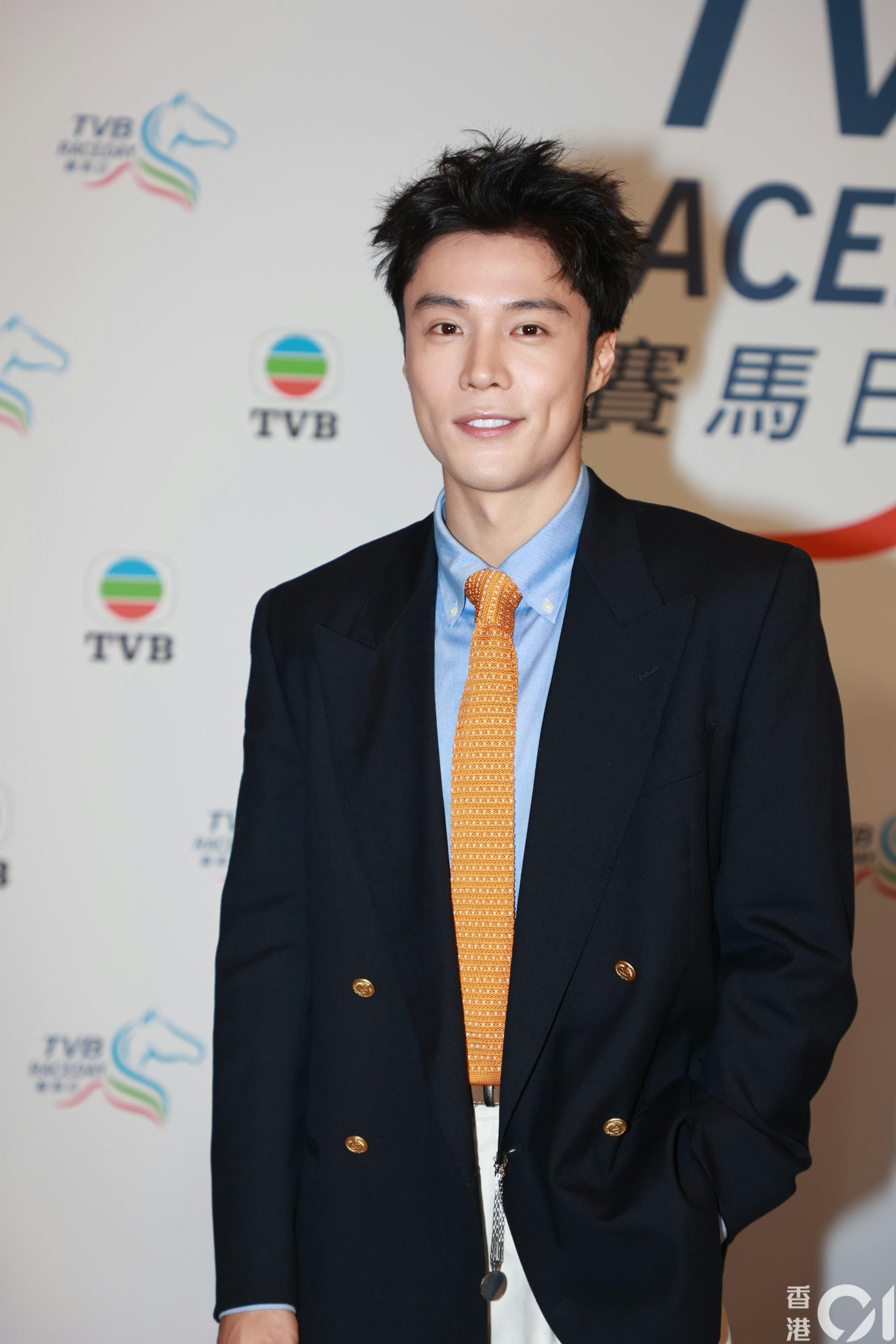 丁子朗以一身藍色西裝搭配橙色領呔現身「TVB賽馬日」,帥氣十足又醒神。(葉志明 攝)