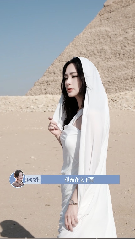 阿嬌日前為雜誌拍攝,特意飛到埃及取景。阿嬌穿上多套靚靚的衣服,頭上披上白色頭巾,又騷出美肩,在金字搭前擺出不同Pose影美照。阿嬌雖然指當日風沙大、太陽曬,但慶幸見到了金字塔。阿嬌又在金字塔前食雪糕解熱,十分享受。阿嬌之後又到博物館、夜市遊玩,有兩位包頭巾的中國留學生認出了阿嬌,與阿嬌合照,原來阿嬌紅到埃及,認真威水!