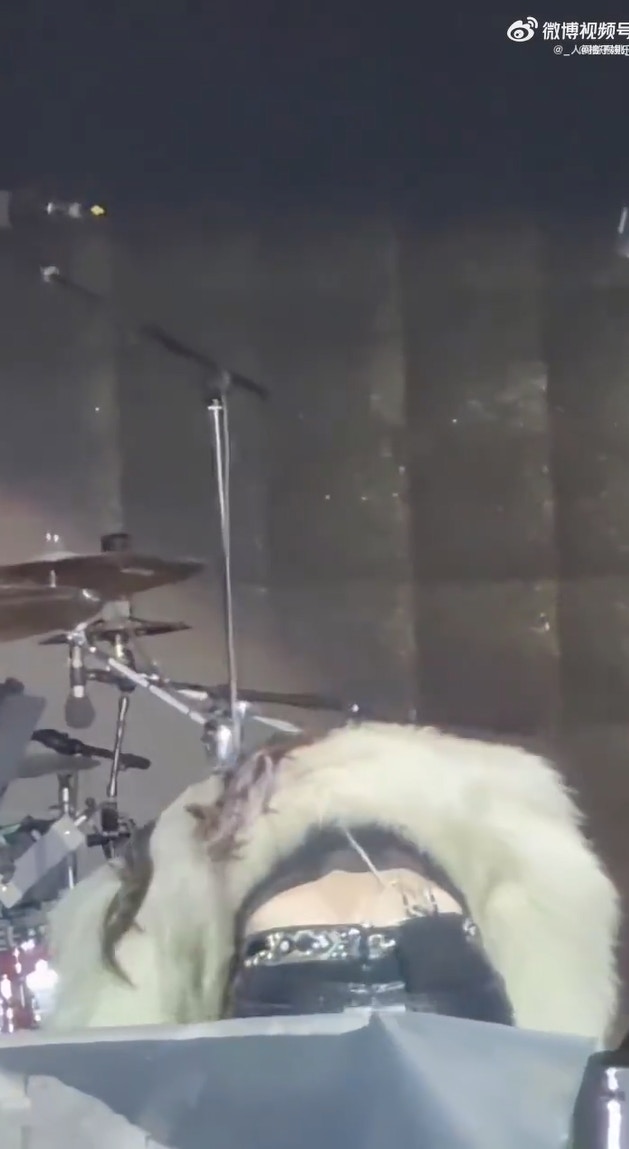 演唱後于文文突然轉身蹲坐在舞台中央短暫休息,隨後癱軟倒地、失去意識。(微博圖片)