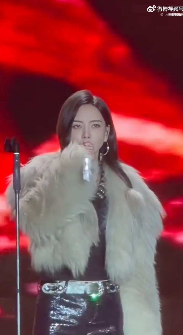于文文演唱過程中多次出現頻繁眨眼疑似不適徵兆。(微博圖片)