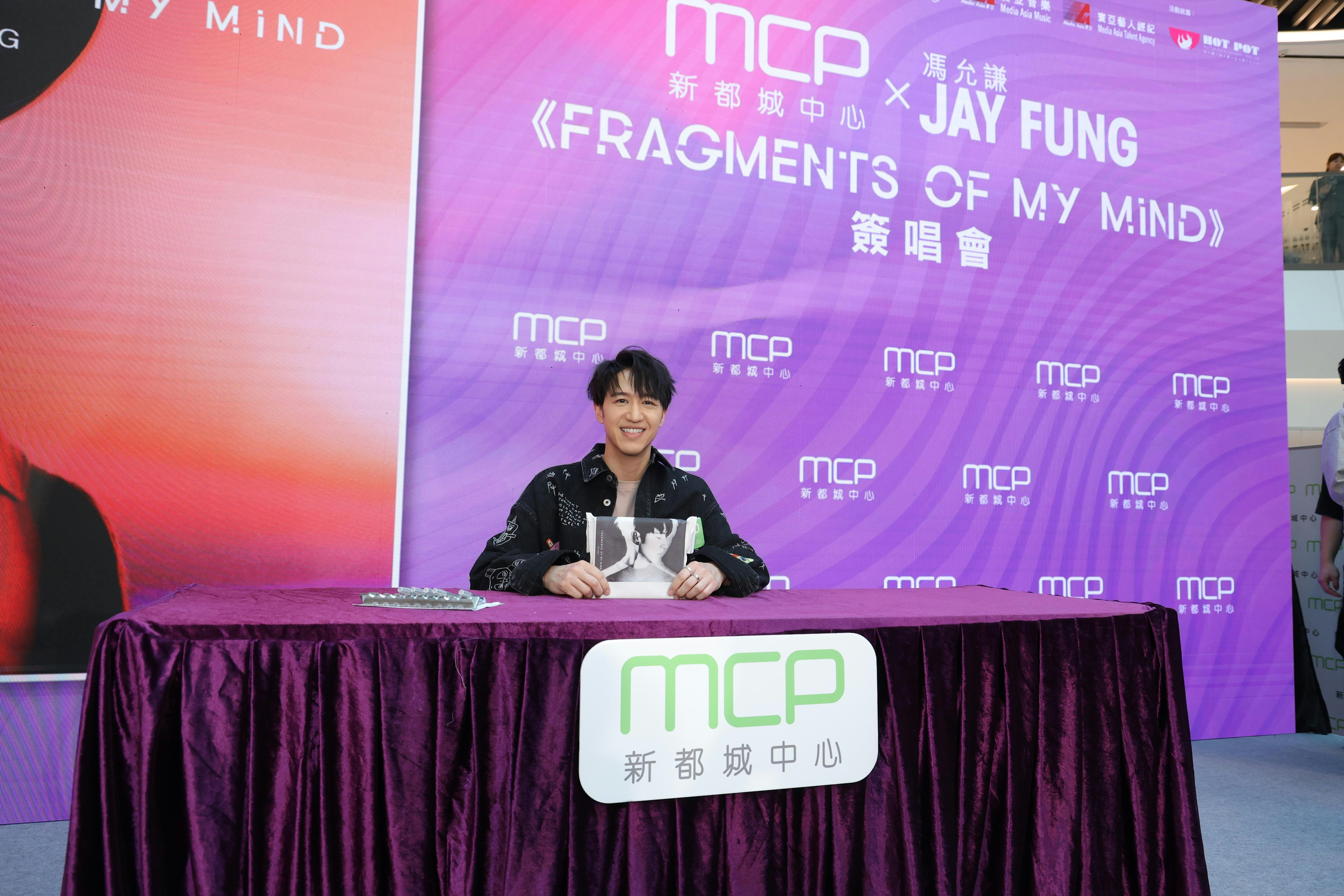 人氣男歌手及叱咜樂壇男歌手金獎得主馮允謙(Jay Fung)近日氣勢如虹!繼早前於頒獎禮榮獲男歌手金獎、及完成首個個人戶外演唱會外,更於近日推出全新專輯《FRAGMENTS OF MY MIND》。為了與樂迷分享喜訊,日前Jay Fung出席將軍澳一商場的舉辦《FRAGMENTS OF MY MIND》簽唱會。席間,Jay Fung即場分享奪金感受、演唱會點滴和暢談製作專輯的靈感及心路歷程,並與一眾粉絲大玩遊戲及演繹歌曲,與粉絲見面作近距離互動,並為新專輯送上簽名,為一眾粉絲帶來驚喜!