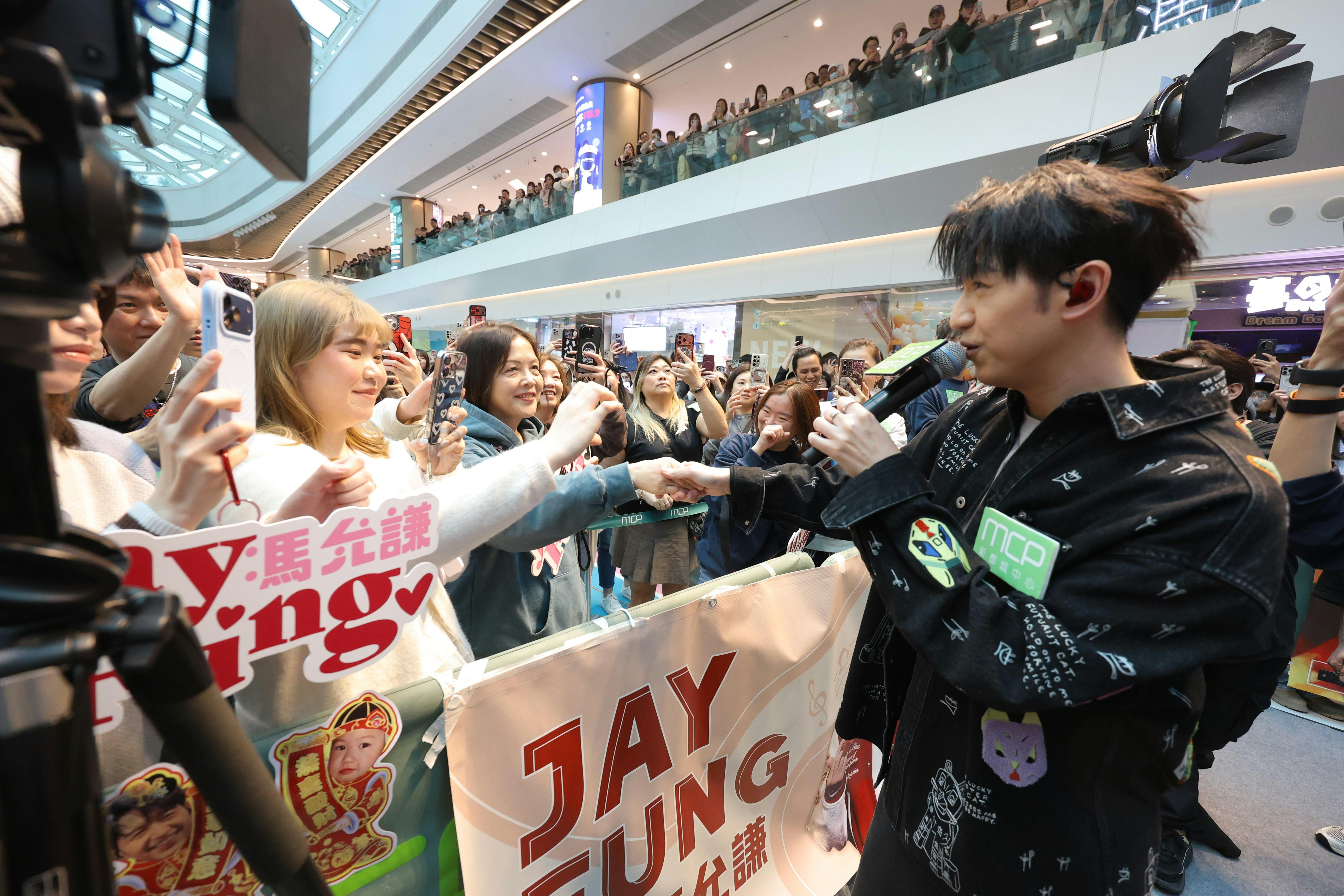其後,Jay Fung更現場演唱了兩首歌曲《齊柏林飛船》與《手繪黑卡》,真摯歌聲及其音樂魅力籠罩整個商場,粉絲們情緒非常高漲,氣氛熱鬧。隨後,他走到台下與粉絲合照,記錄難忘的時刻。接着,Jay Fung舉行了簽名會,耐心為每一位粉絲簽名、寫上名字與祝福。粉絲表示短時間內又可以與偶像近距離接觸,十分興奮和開心。