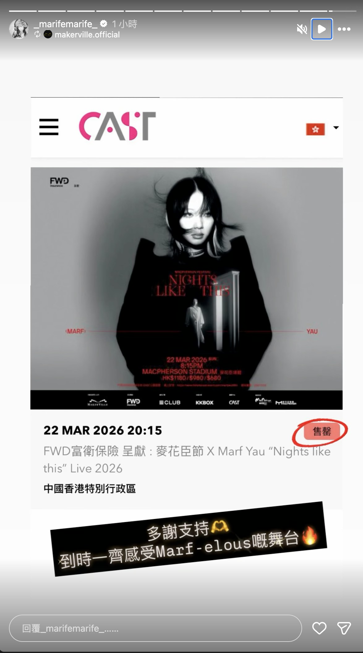 至於農曆新年,Marf不諱言會在排練中度過:「新年總有啲時間留返比屋企人嘅,但主要排練中度過,都唔緊要啦,因為可以有一班夥伴同dancers 陪伴,所以都OK!」今日(5日)亦是演唱會開售日子,主辦宣布門票已火速售罄!