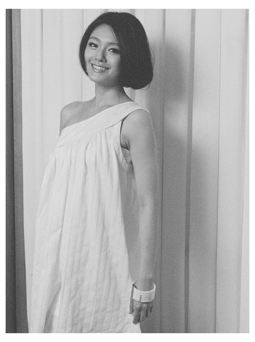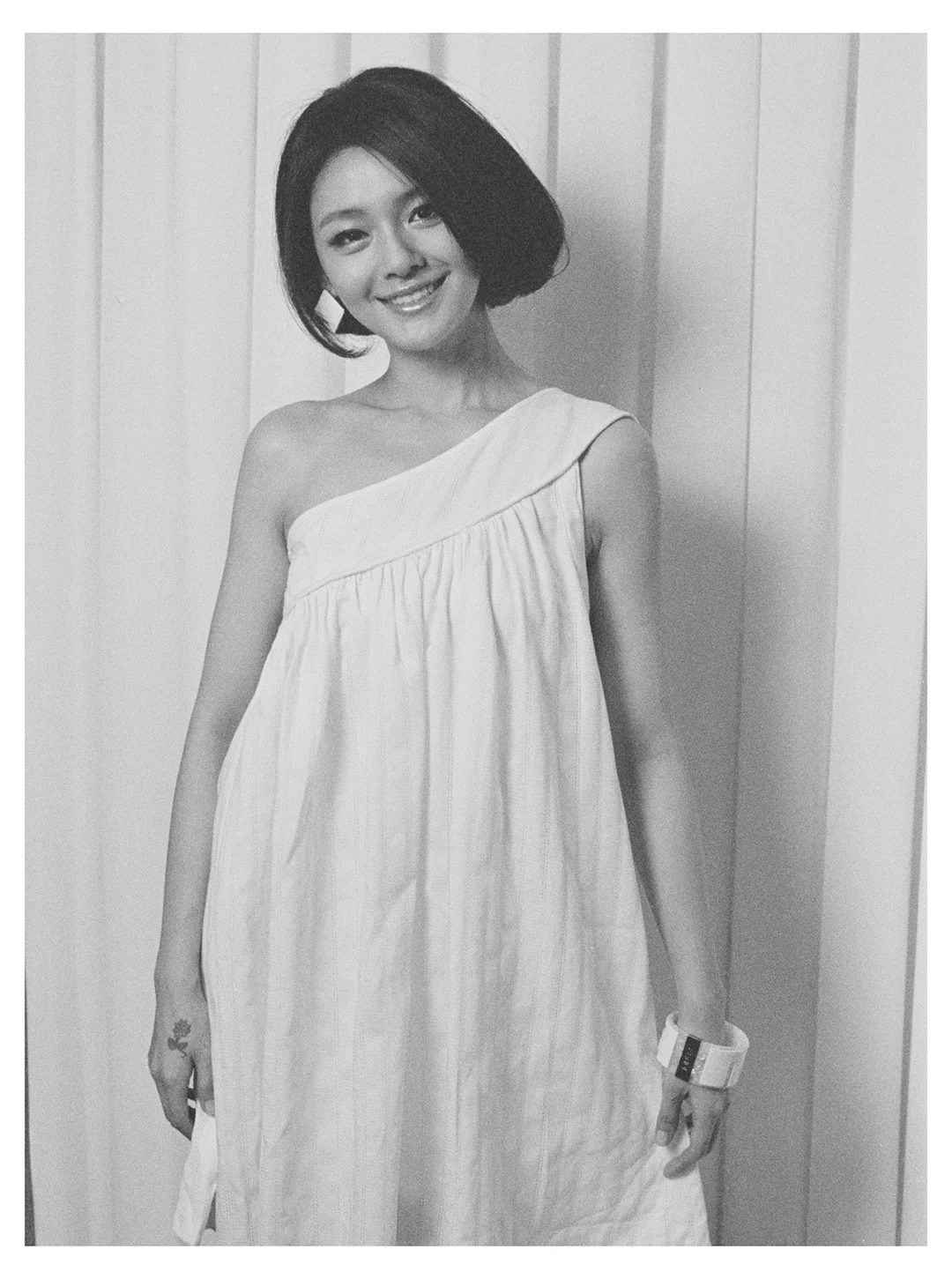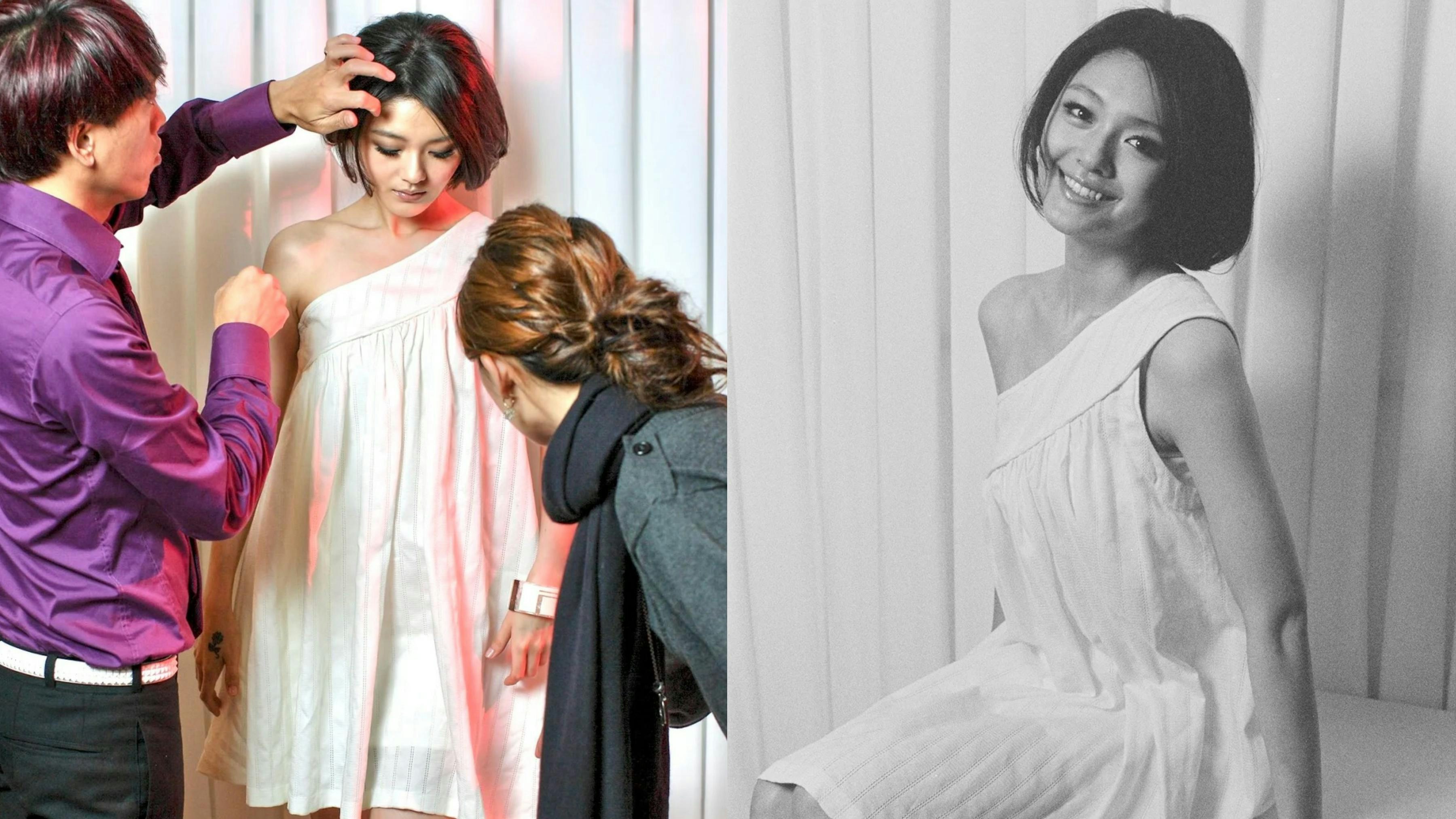 31歲短髮斜膊白裙 黑白菲林下的自信笑容