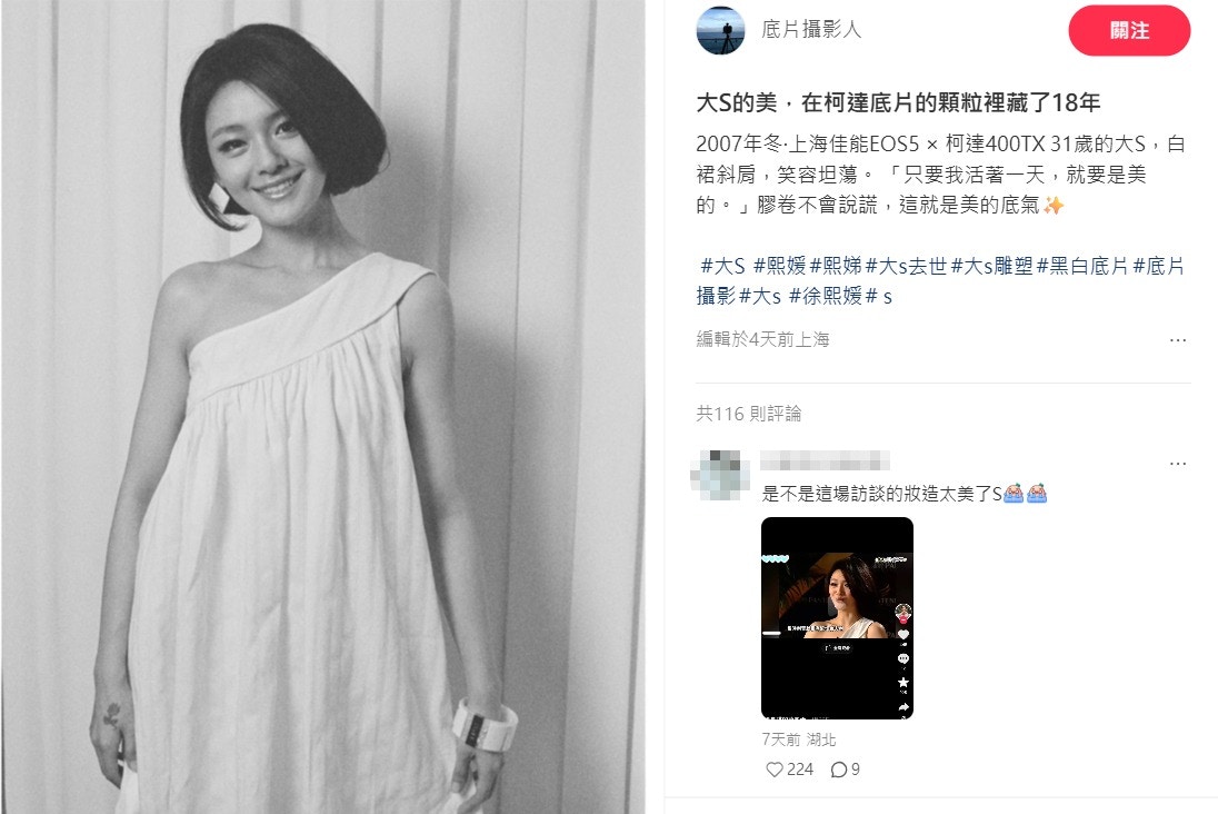 台灣女星大S(徐熙媛)已逝世一周年。(小紅書@膠片攝影人)