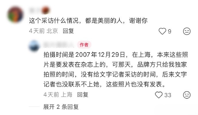 攝影師在帖文中揭露了當年的幕後「烏龍」事件,揭露這組照片原計劃是用於雜誌刊登的時尚大片。(小紅書@膠片攝影人)