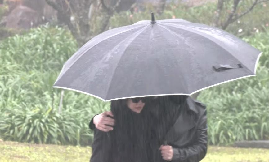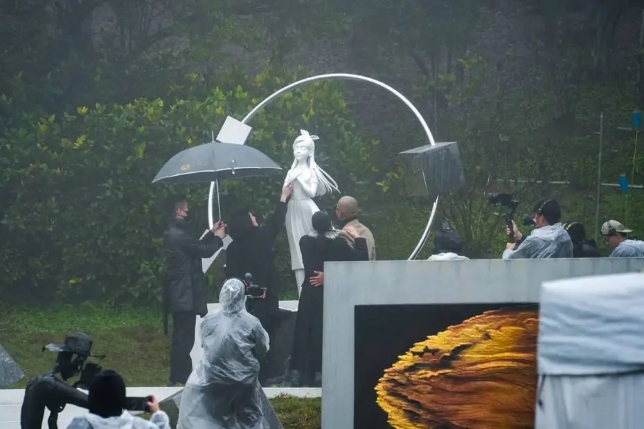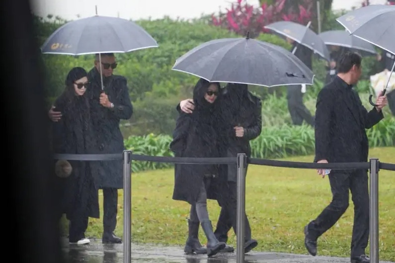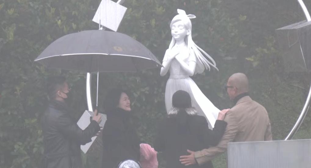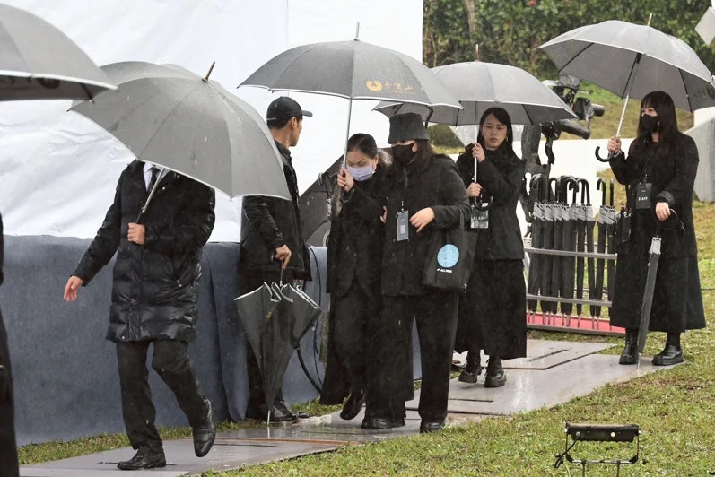台媒《聯合新聞網》報道,大S丈夫具俊曄及大S家人於下午舉行紀念雕像揭幕儀式。現場雨勢不斷,大S母親(S媽)挽着具俊曄的手抵達現場。小S(徐熙娣)身着黑衣、戴着墨鏡,神情凝重,在老公許雅鈞的陪同下低調現身。