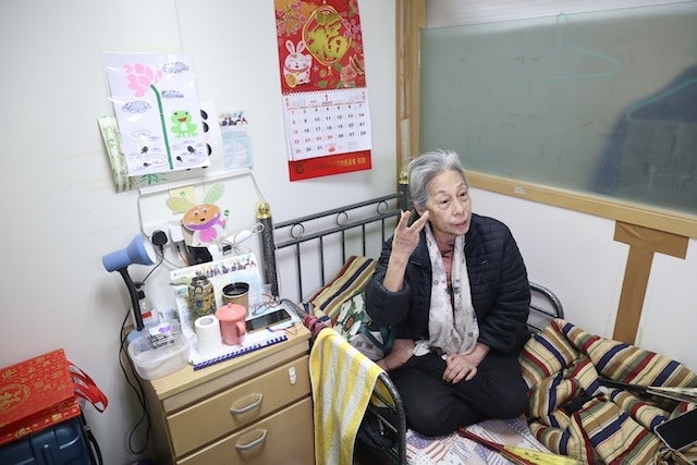 李楓居於不足一百呎板間房,但她表示已很心足。(陳順禎攝)