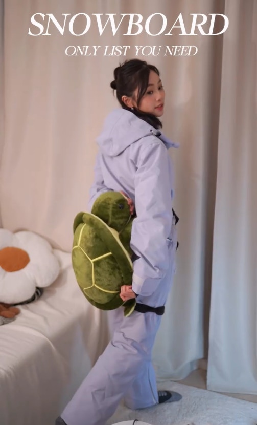 為了這次滑雪初體驗,郭柏妍可謂做足準備功夫。從她上載的影片可見,她全副武裝上陣,穿上貼身滑雪戰衣,盡顯其纖瘦修長的好身材。為了安全起見,她更在臀部掛上可愛的「防跌神器」——綠色烏龜軟墊,造型既專業又充滿童趣。