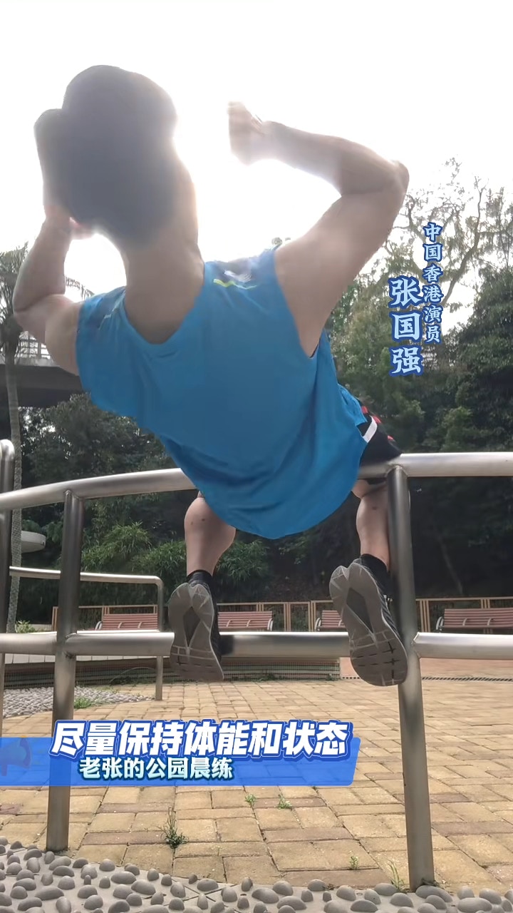 張國強身體狀態好,全因他平時鍛鍊有功,他曾分享自己平時鍛鍊身體的片段,足球員出身的他,穿上背心短褲,在公園裡進行一連串高強度訓練,包括:踏階運動、兔仔跳、高抬腳等動作,甚至做出高難度的雙腳倒吊做仰臥起坐,不但沒有「渣流灘」,還要全程面不改容,手臂和腿部肌肉線條清晰可見,狀態好到驚人!