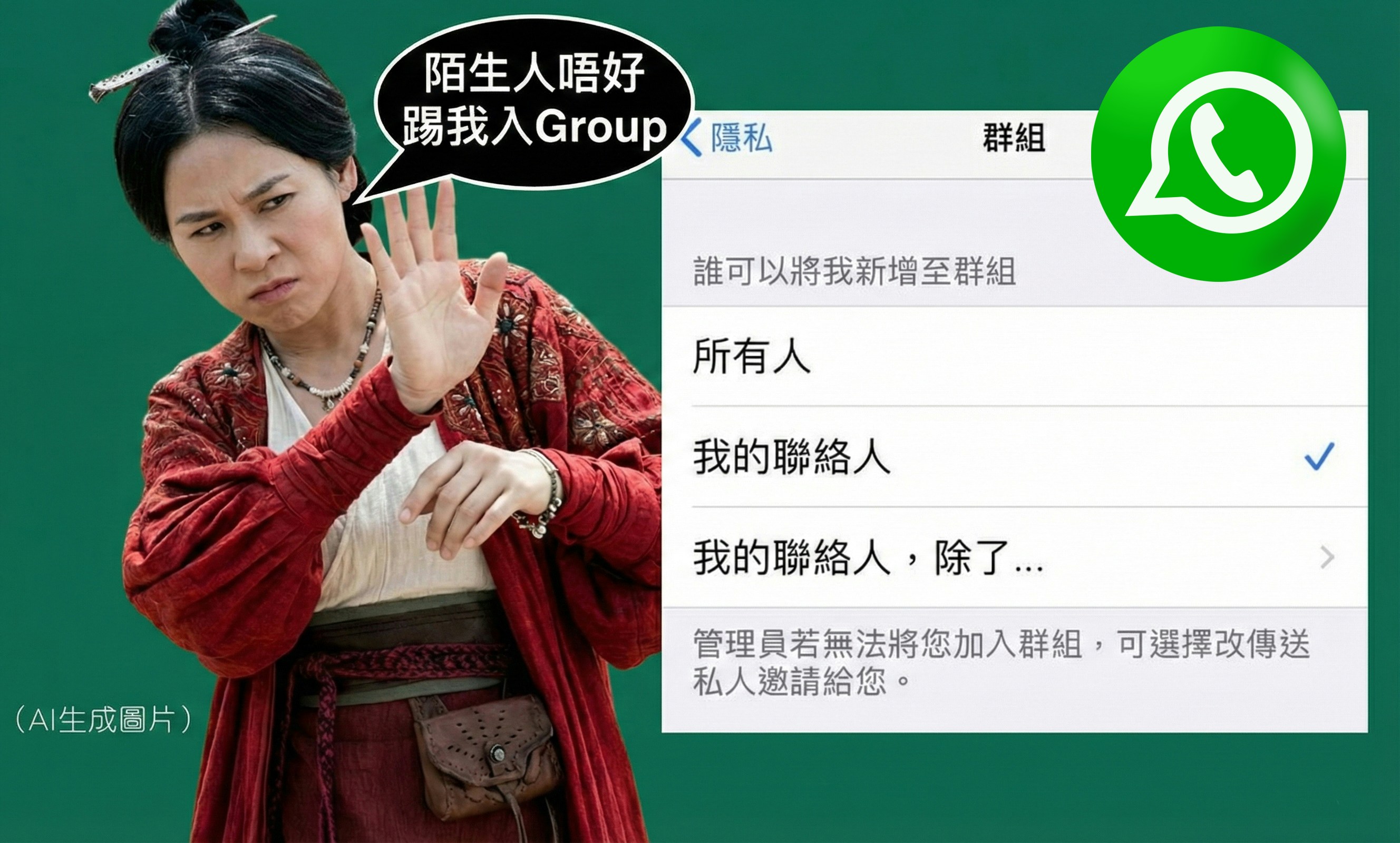 年近歲晚,親戚/朋友/同學約食飯見面,最喜歡忽然開個WhatsApp群組,拉你入去,其實都幾麻煩。大家可修改群組私隱設定,限制誰能將你加入群組,並將未知來電者設為靜音,守護溫馨家庭時光 。