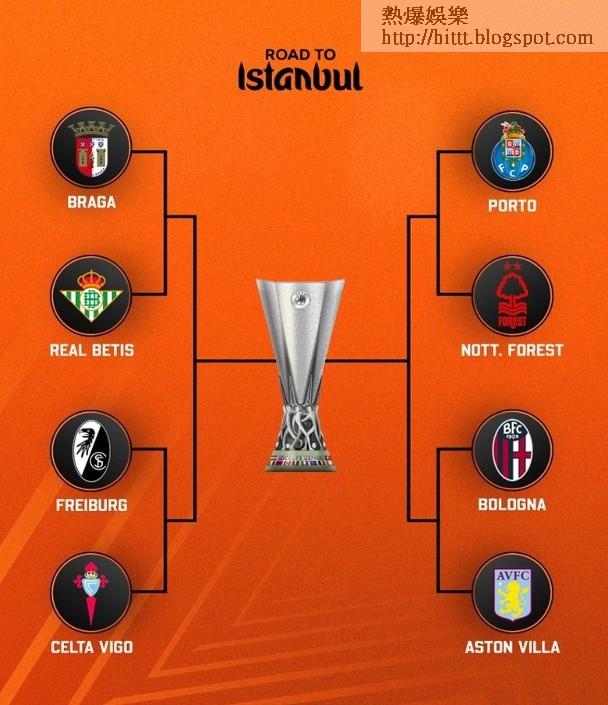歐霸盃8強全部誕生,另一英超球隊阿士東維拉,喺主場2比0擊敗里爾,兩回合合計贏3比0晉級,8強會對意甲嘅博洛尼亞。其餘兩場8強賽事,分別係布拉加對貝迪斯、弗賴堡對切爾達。
