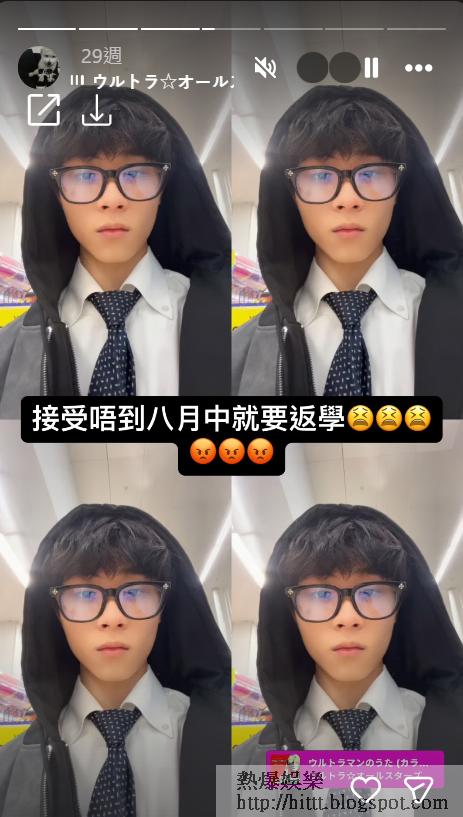 另外,年幼時眼細細的Ugo,長大後五官端正,某些角度跟剛出道時的姜濤似樣,氣質與眼神亦被網民拿來與ANSONBEAN相比,翻看他的IG,Ugo以韓文發帖,打扮亦偏韓風,令外界猜測他或在當地留學。