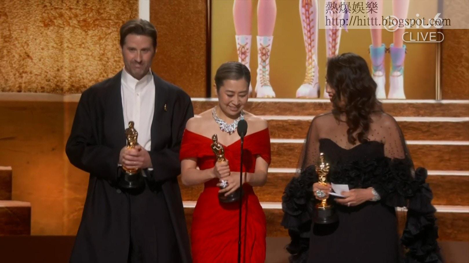 Netflix製作的《Kpop獵魔女團》(KPop Demon Hunters)勇奪「最佳動畫長片」。(奧斯卡直播截圖)