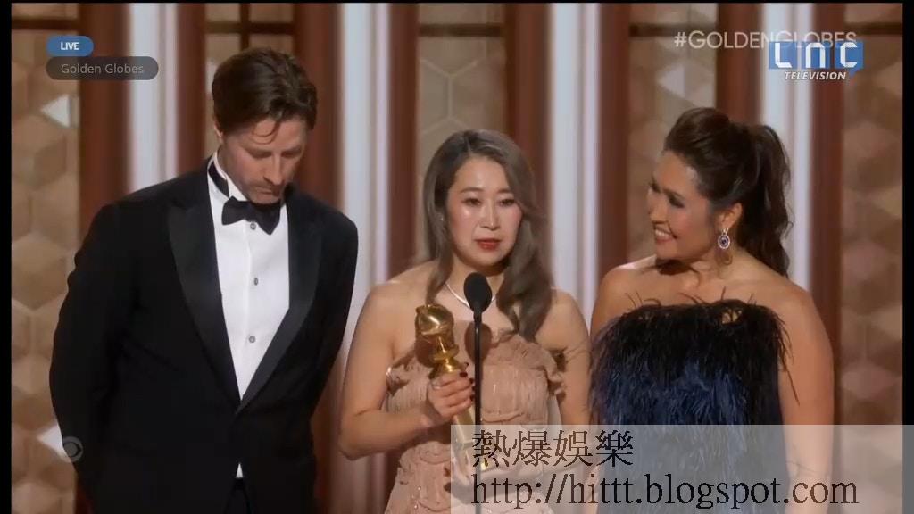 Netflix動畫《Kpop獵魔女團》,在金球獎同樣奪得「最佳動畫電影」獎。(直播截圖)