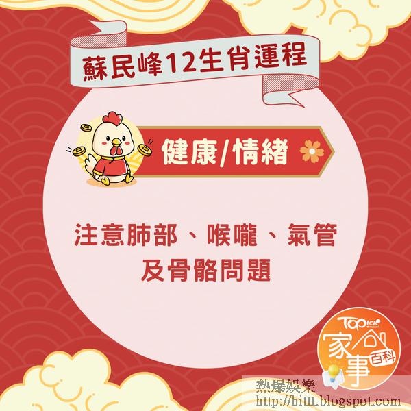 蘇民峰2026生肖運程|屬雞紅鸞桃花年要注意健康 肖狗凶星最多易惹官非【雞、狗、豬】
