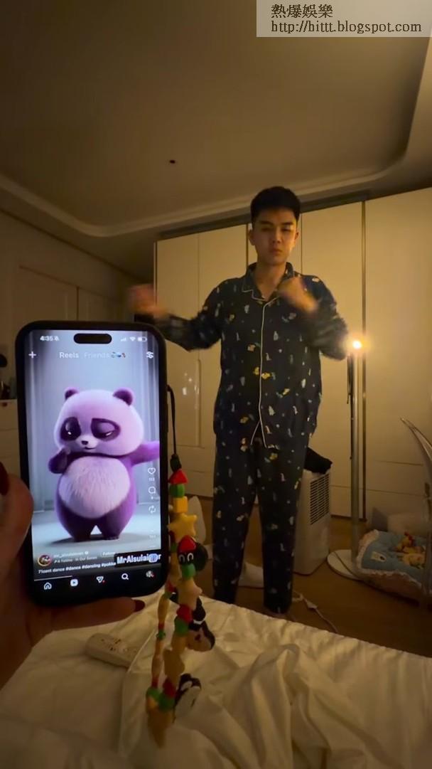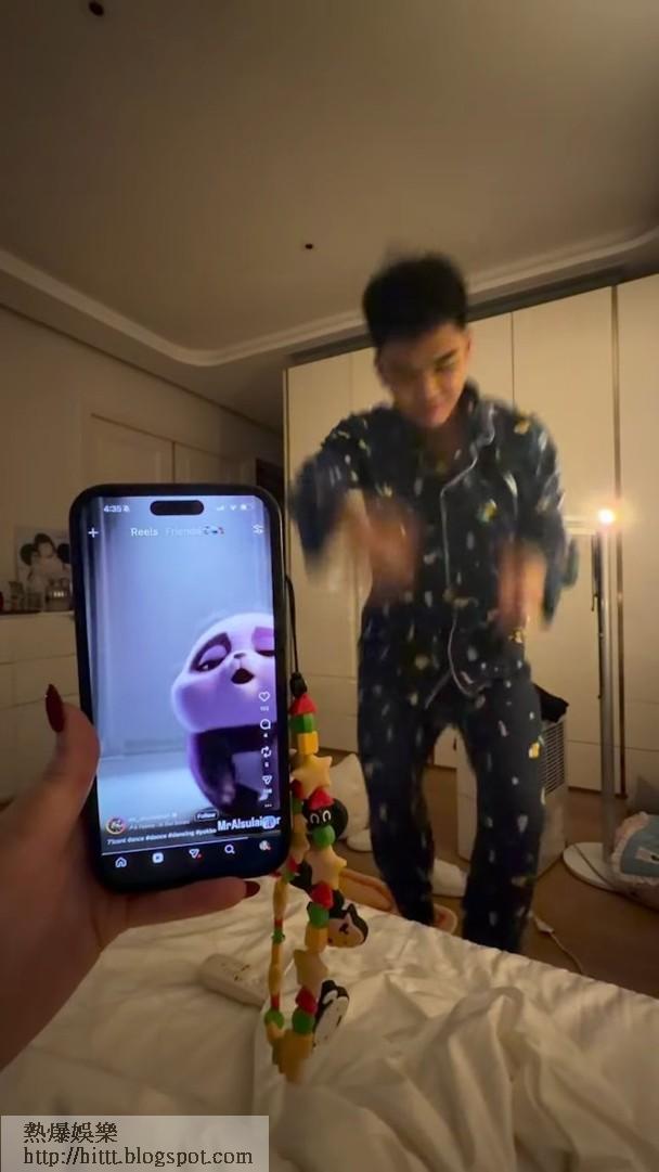 Shirley在社交平台上載了一段動態影片,意外曝光了夫妻倆的深夜情趣。片段中,原本正在熟睡的伍富橋,在凌晨4點被老婆突然拍醒。面對老婆的「突擊」,伍富橋不但沒有發脾氣,反而極速回過神來,更立刻配合老婆的要求,在半睡半醒的狀態下起身大跳勁舞,盡力狂扭冧老婆。