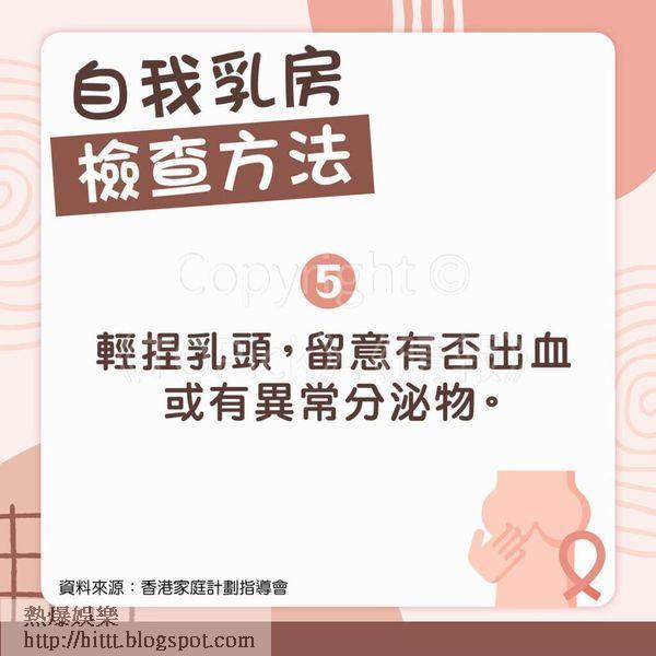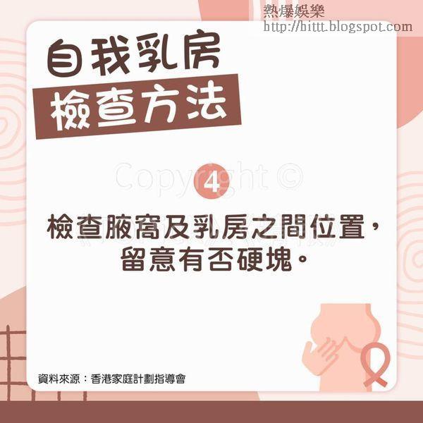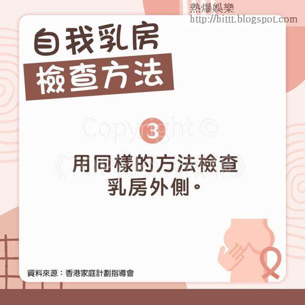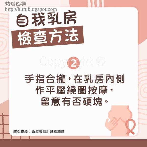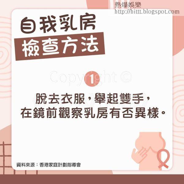 其實男女都會有可能患上乳癌,而兩者檢查乳癌的方法大致相同,只要定期檢查,可以增加及早發現乳癌的機會。據香港家庭計劃指導會資料,自我乳房檢查的目的是提高對自己乳房的認識及對乳房疾病的警覺性,大部分的乳房腫塊都是在自我檢查時發現。自我檢查應在乳房並無疼痛或腫脹的情況、如經期後進行;停經後的婦女則可在任何時候進行。任何女性一旦發現乳房腫塊,應盡早找醫生檢查,獲取專業的意見和診斷。