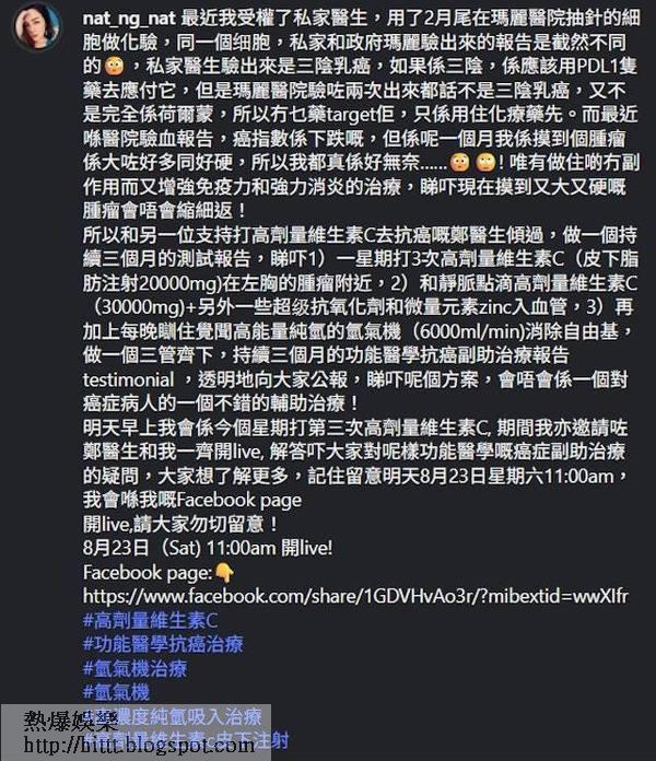 吳文忻4期乳癌抽細胞化驗 兩個報告結果不同感無奈