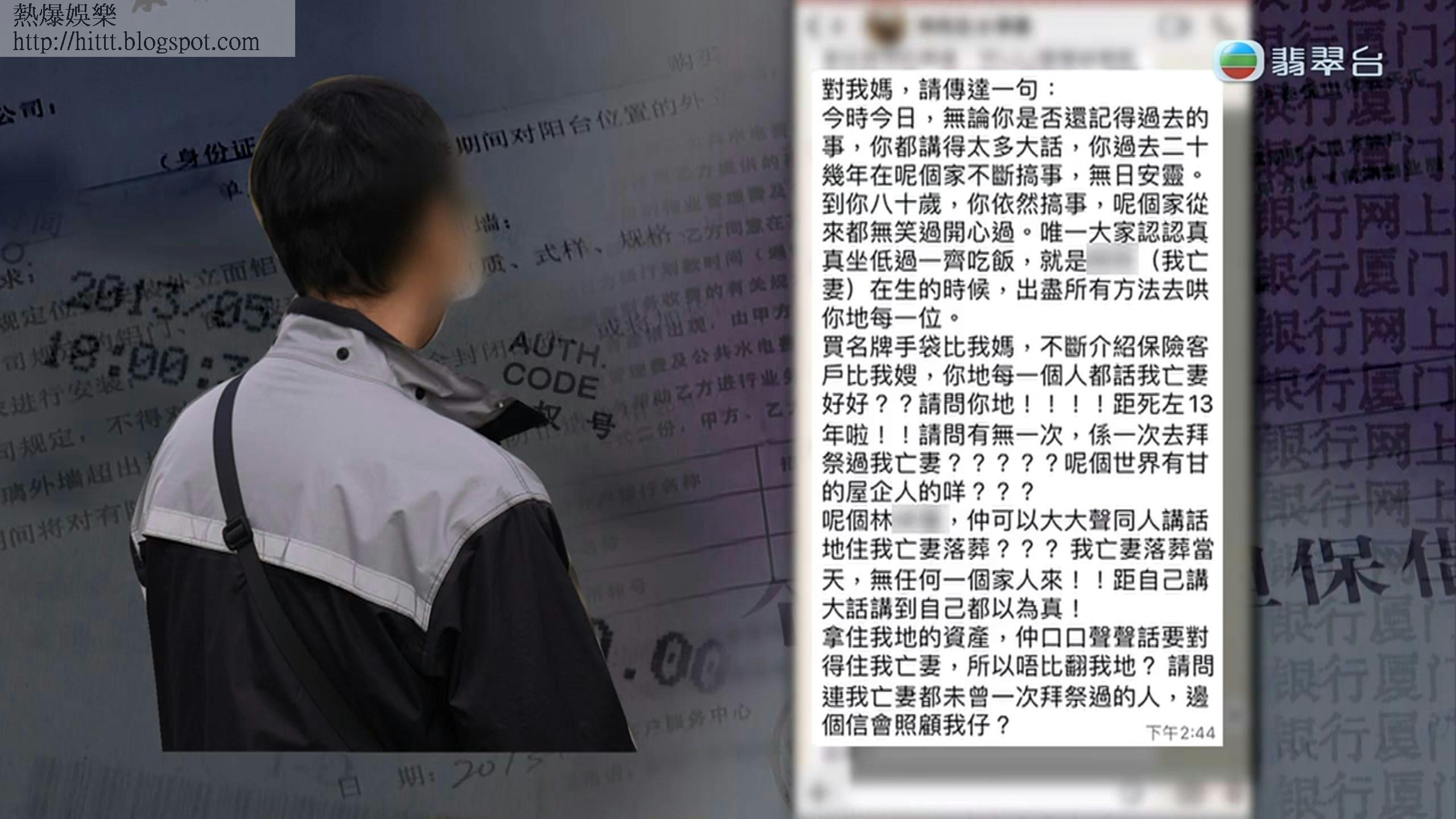 林生到場後,阻止了哥哥的去路,質問為什麼他要離開,又問取走了的東西何時歸還,但林生的哥哥卻態度十分抗拒,說:「而家包生仔?醫生都唔擔保醫好你你保證對方一定畀返錢你咩?」更囂張指如有有證據就報警告他侵吞財產。見到兩兄弟發生爭執,媽媽十分緊張,直叫:「唔好嘈啦,兩個都係媽媽生。」