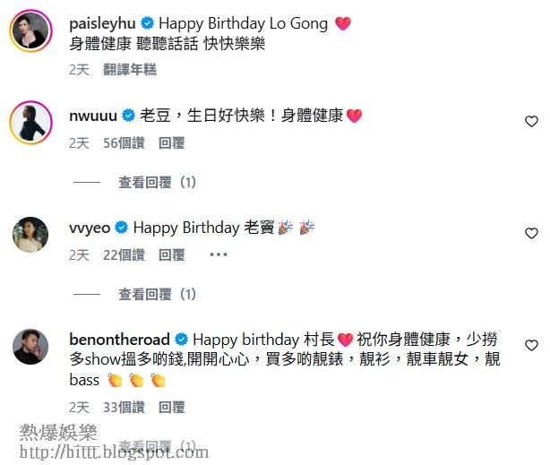 單立文生日亦引來不少藝人好友留言祝福,胡定欣親暱稱呼豹哥為「老豆」並祝願:「老豆,生日好快樂!身體健康 ❤️」;袁偉豪留言:「Happy birthday 村長 ❤️ 祝你身體健康,少撈多show搵多啲錢,開開心心,買多啲靚錶,靚衫,靚車靚女,靚bass 👏👏👏👏」。此外,李施嬅、胡杏兒及古佩玲等人亦相繼送上「Happy birthday」祝福。