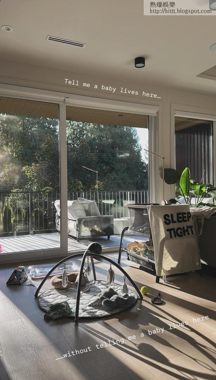 豪宅佈置簡約,客廳有不少BB用品及玩具,更設有一個大露台,擺放了戶外梳化,落地玻璃設計採光度十足,相當舒適!(IG截圖)