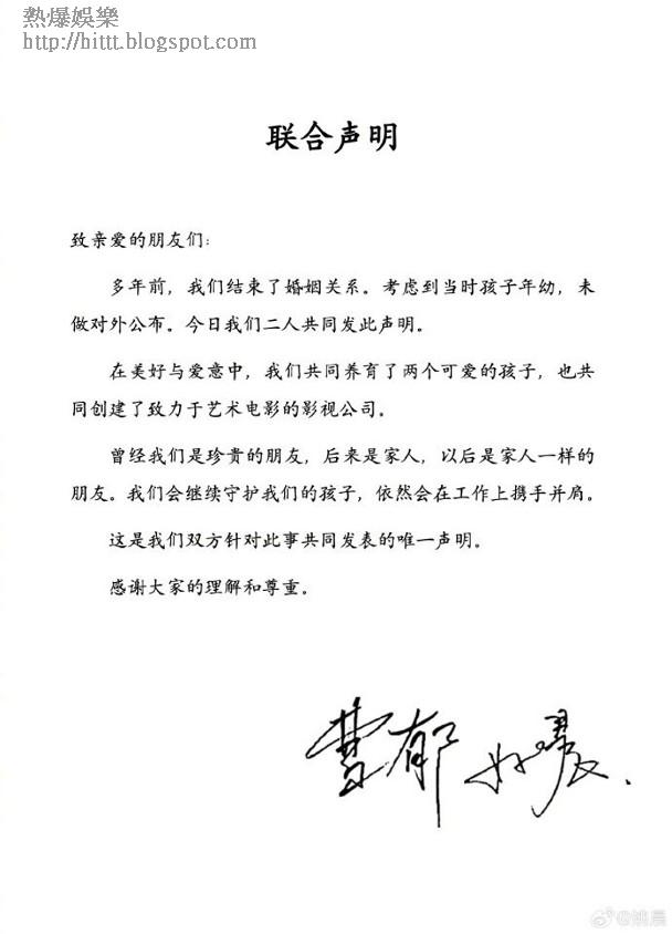 現年46歲的內地女星姚晨今午(16日)在毫無預警下,宣布與第二任攝影師丈夫曹郁正式結束婚姻關係。兩人聯署於社交平台發文,寫道:「山水一程,三生有幸。緣來緣去,皆是歡喜。致親愛的朋友們:多年前,我們結束了婚姻關係。考慮到當時孩子年幼,未做對外公布。今日我們二人共同發此聲明。在美好與愛意中,我們共同養育了兩個可愛的孩子,也共同創建了致力於藝竹術電影的影視公司。曾經我們是珍貴的朋友,後來是家人,以後是家人一樣的朋友。我們會繼續守護我們的孩子,依然會在工作上攜手並肩。這是我們雙方針對此事共同發表的唯一聲明。感謝大家的理解和尊重。」