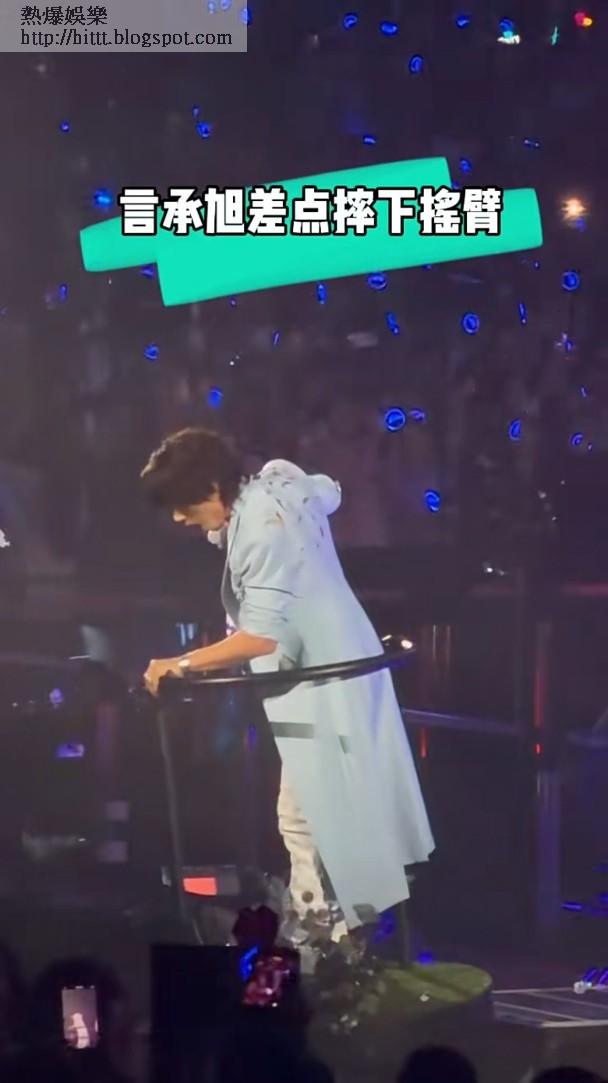從粉絲拍攝的現場影片可見,言承旭事發時站在單人升降台等待降落舞台,期間升降台發生故障,傾斜並晃動了數下,言承旭頓時站不穩,難掩驚慌神情,反應敏捷的他即緊握扶手,工作人員見狀亦衝上前幫忙,幸好並無大礙。歌迷見到這膽戰心驚的一幕,紛紛留言叮囑主辦方要好好檢查舞台設備,保障各人安全。