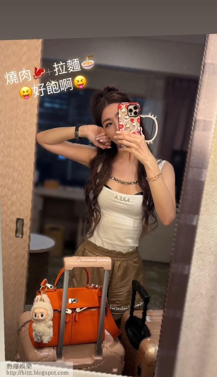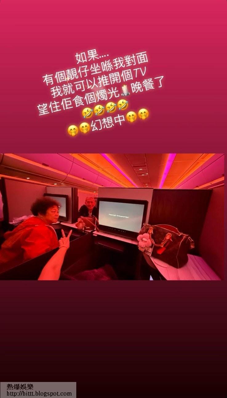 李彩華坐頭等艙,又「不經意」曬出價值約12萬的Hermès Constance及LV手袋。(IG截圖)